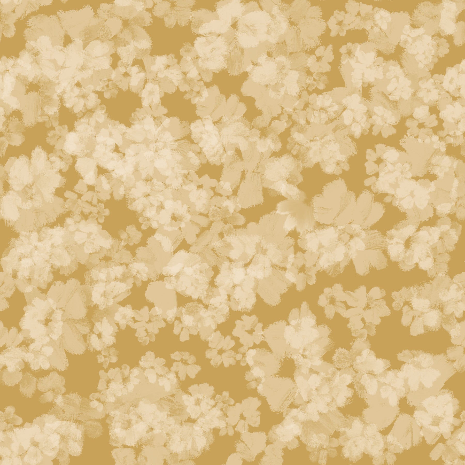 Warm amber flower print wallpaper, stylish artistic background, Golden Soft Blossom.