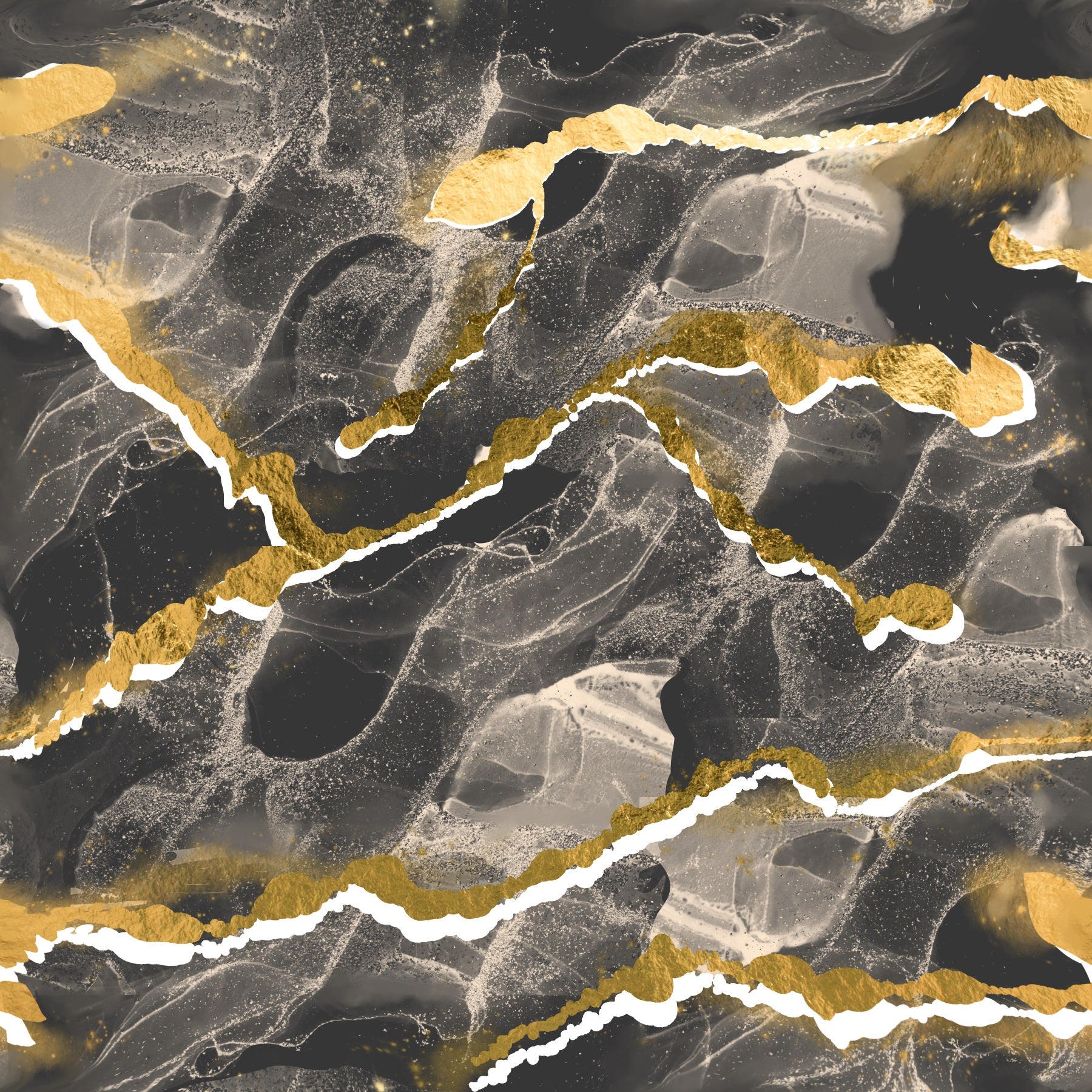 Indulge in the opulent allure of the 'Golden Veins Charcoal Marble' wallpaper. This modern luxe abstract design masterfully blends the dramatic depths of charcoal with the radiant shimmer of golden accents. Like veins of precious metal running through a dark, metamorphic stone, the golden lines cut across a mesmerizing marble-like texture, creating a sense of depth and movement. The blend of textures and colors adds to the overall luxuriousness. The design evokes a feeling of sophisticated elegance, adding a touch of grandeur to any space. Perfect for those who appreciate refined aesthetics, this wallpaper transforms ordinary walls into stunning works of art. Elevate your interior with the captivating drama and timeless beauty of this abstract masterpiece.