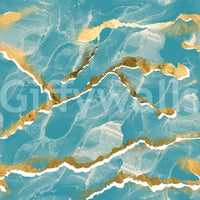 A modern abstract wall mural depicting a stunning tropical teal and gold Marble Wallpaper pattern.