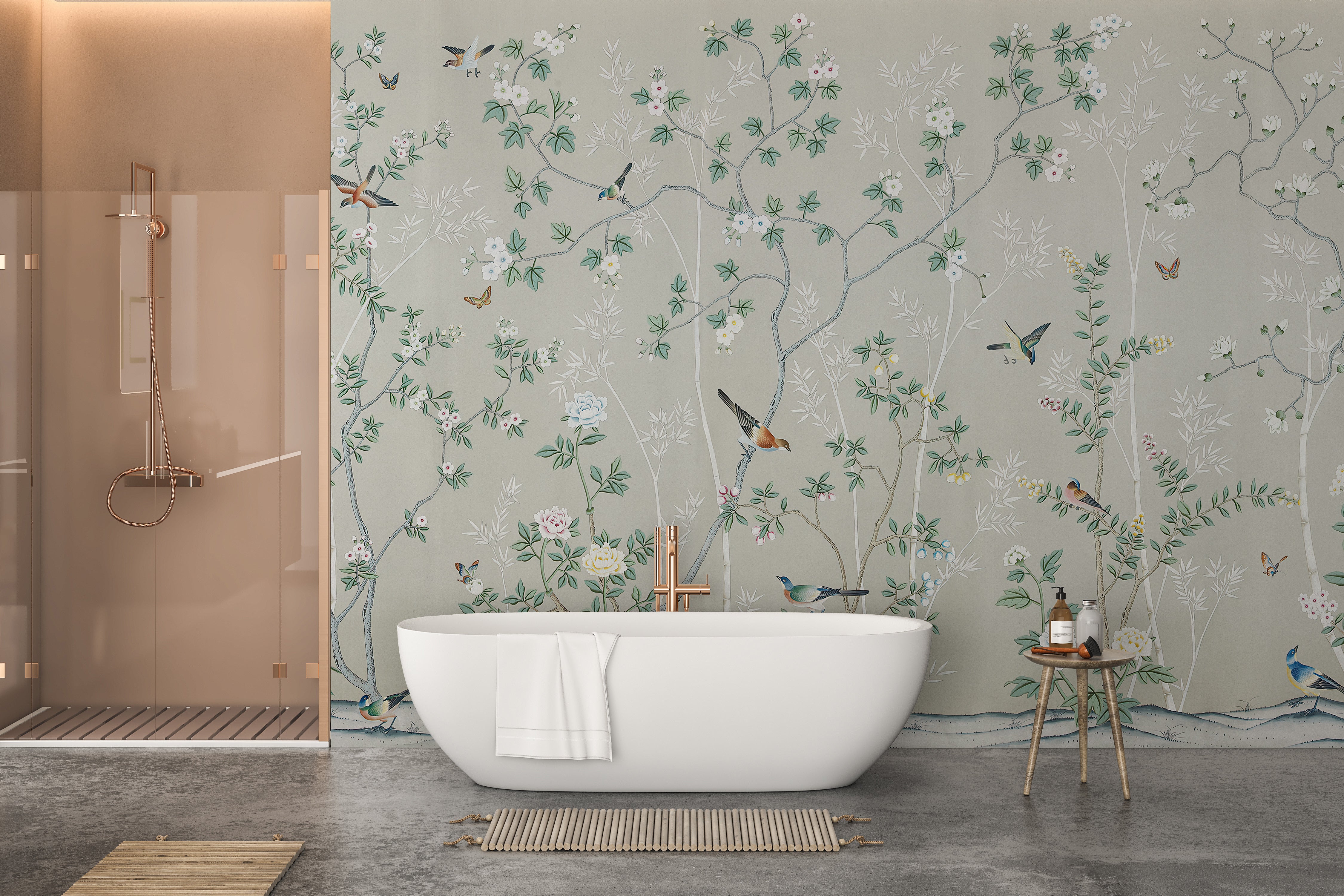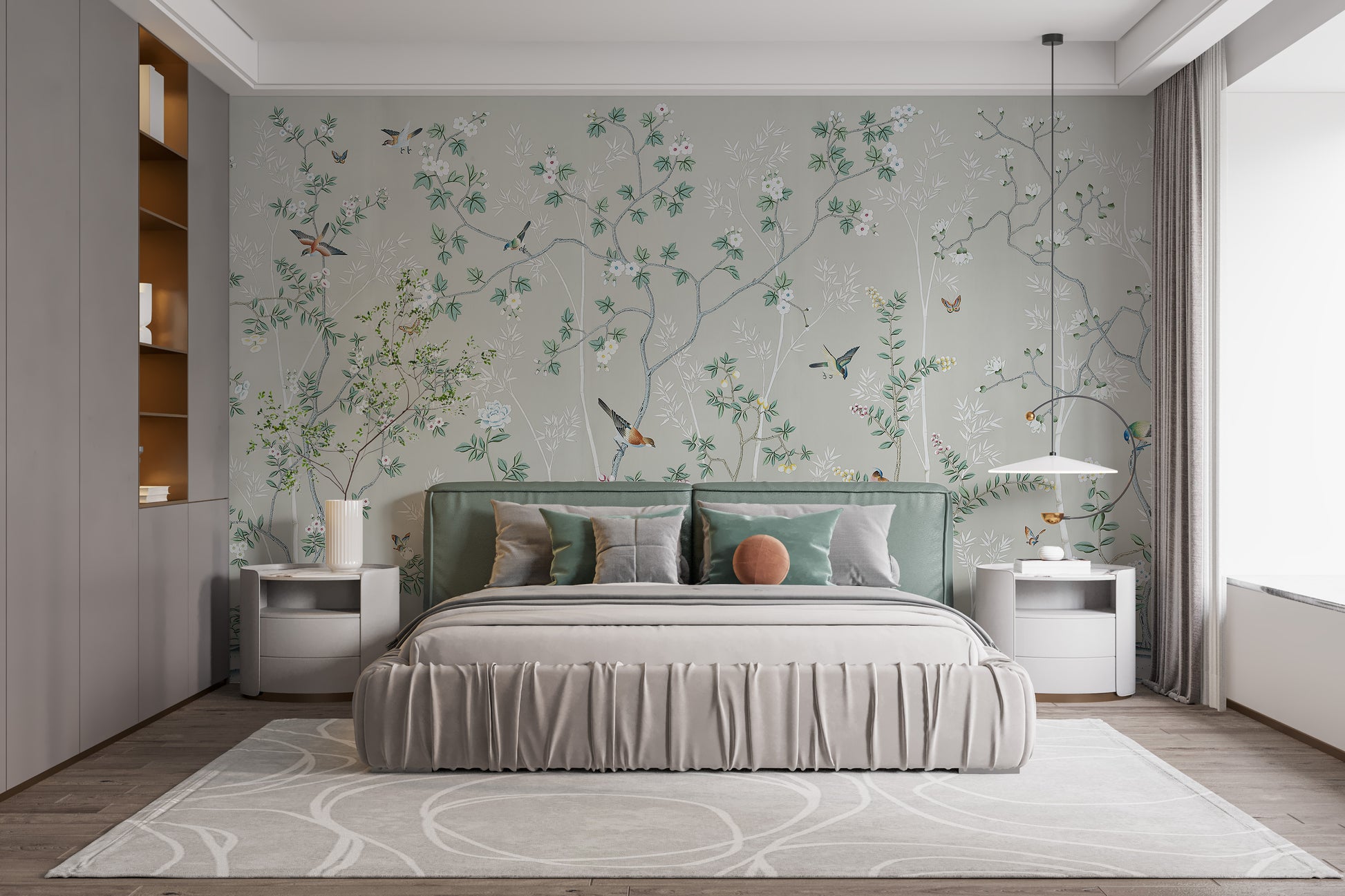 Appreciated for its blend of classic and modern aesthetics, this Chinoiserie wallpaper mural is a hit among homeowners and designers looking for a way to incorporate timeless art with a fresh twist. The subtle colors and intricate patterns provide a soothing yet engaging environment, enhancing the space with a sense of luxury and tranquility.
