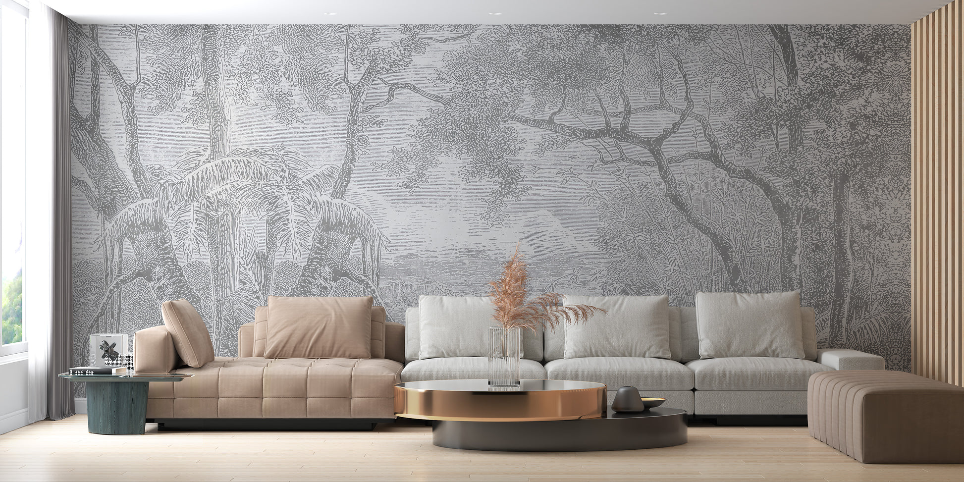 Gray Color Sketch Forest Wallpaper Murals for a Natural Look