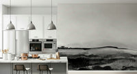 Elevate your interior with this sophisticated grayscale landscape. The artwork uses striking brushstrokes to define rolling hills against a bright sky. It introduces depth and visual interest, ideal for living rooms, bedrooms, or hallways. Transform any space into a gallery with this statement piece. Choosing this wallpaper for walls brings a touch of nature indoors. Its adaptable design seamlessly complements modern, industrial, and minimalist aesthetics. Feel inspired in a space enhanced by the allure of grayscale artistry.