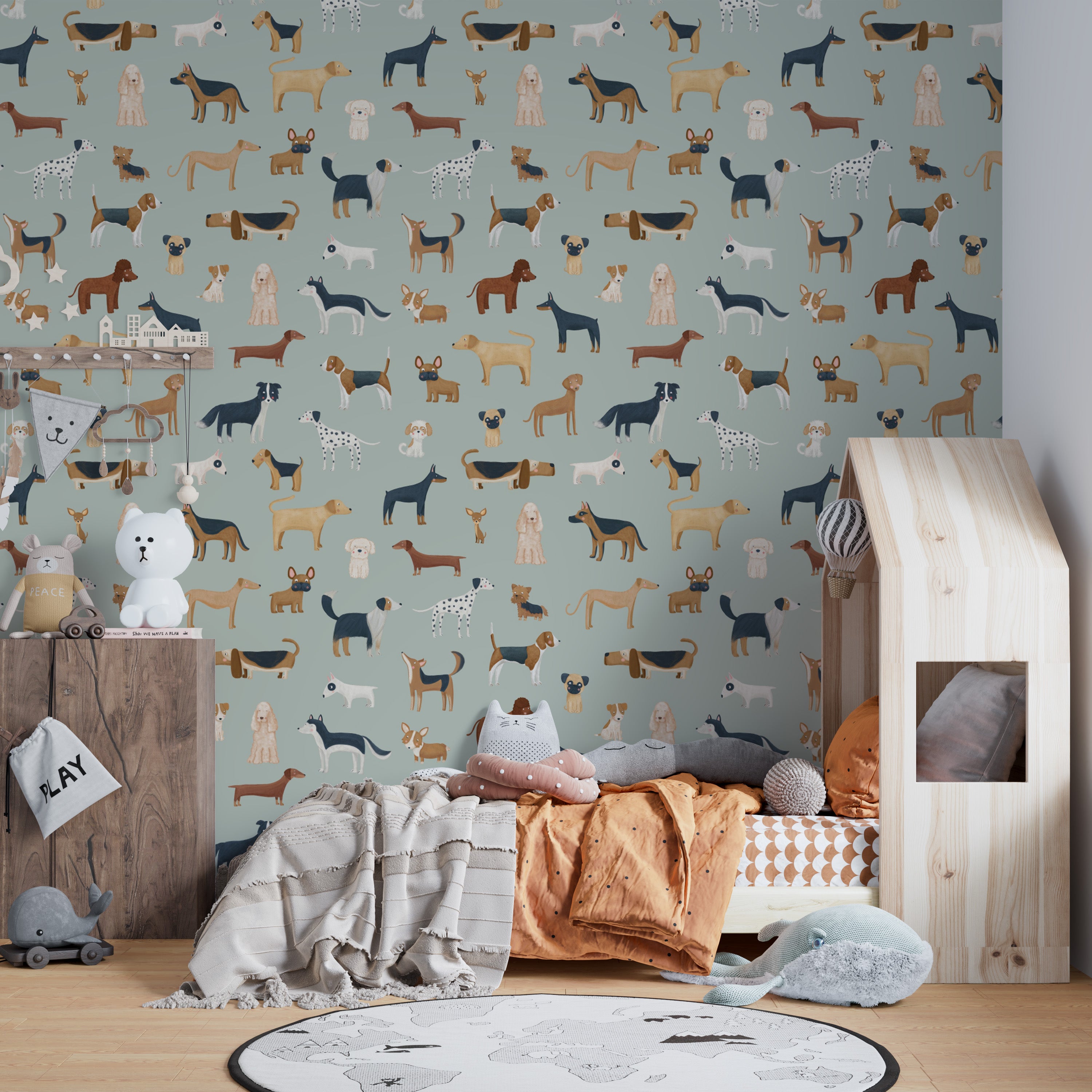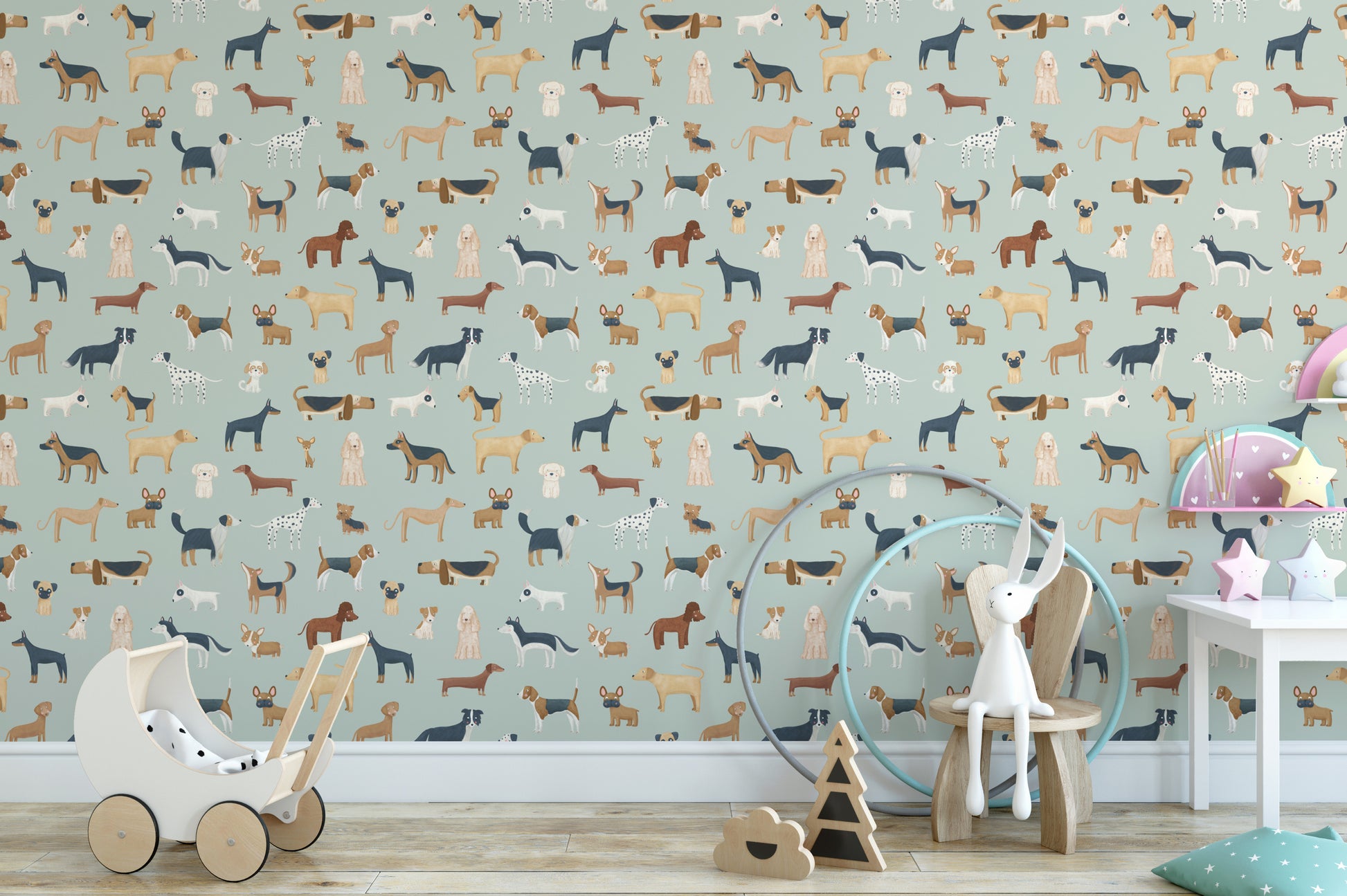 Dog wallpaper for nurseries and playrooms