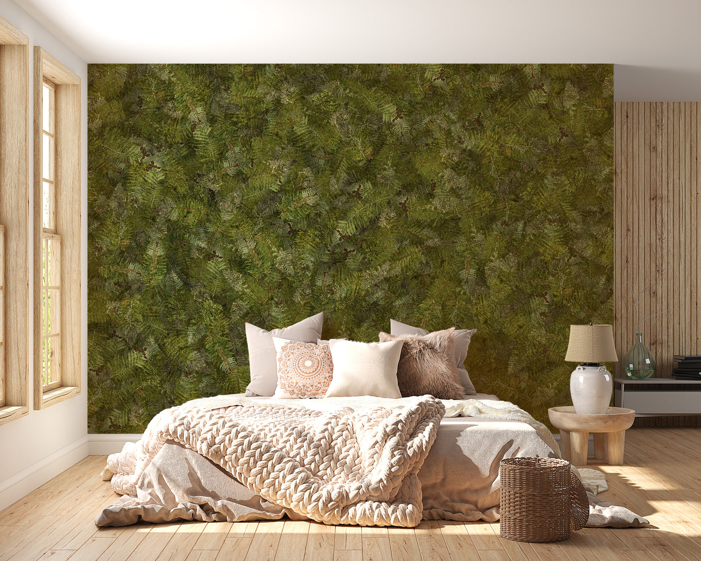 Green Embroidery Ferns Bracken Wallpaper Murals - Giffywalls