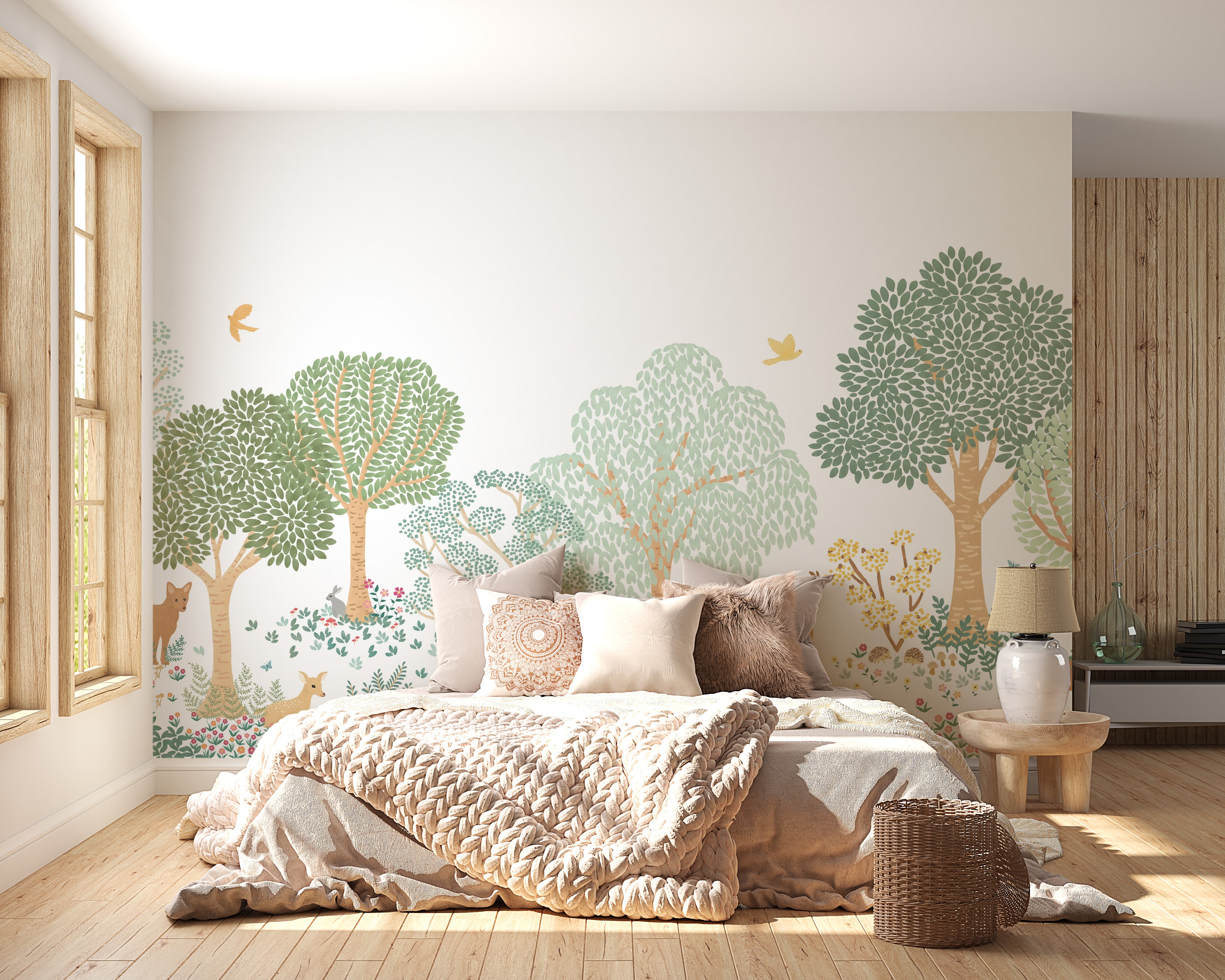 Kids' room forest animal wallpaper with woodland vibes