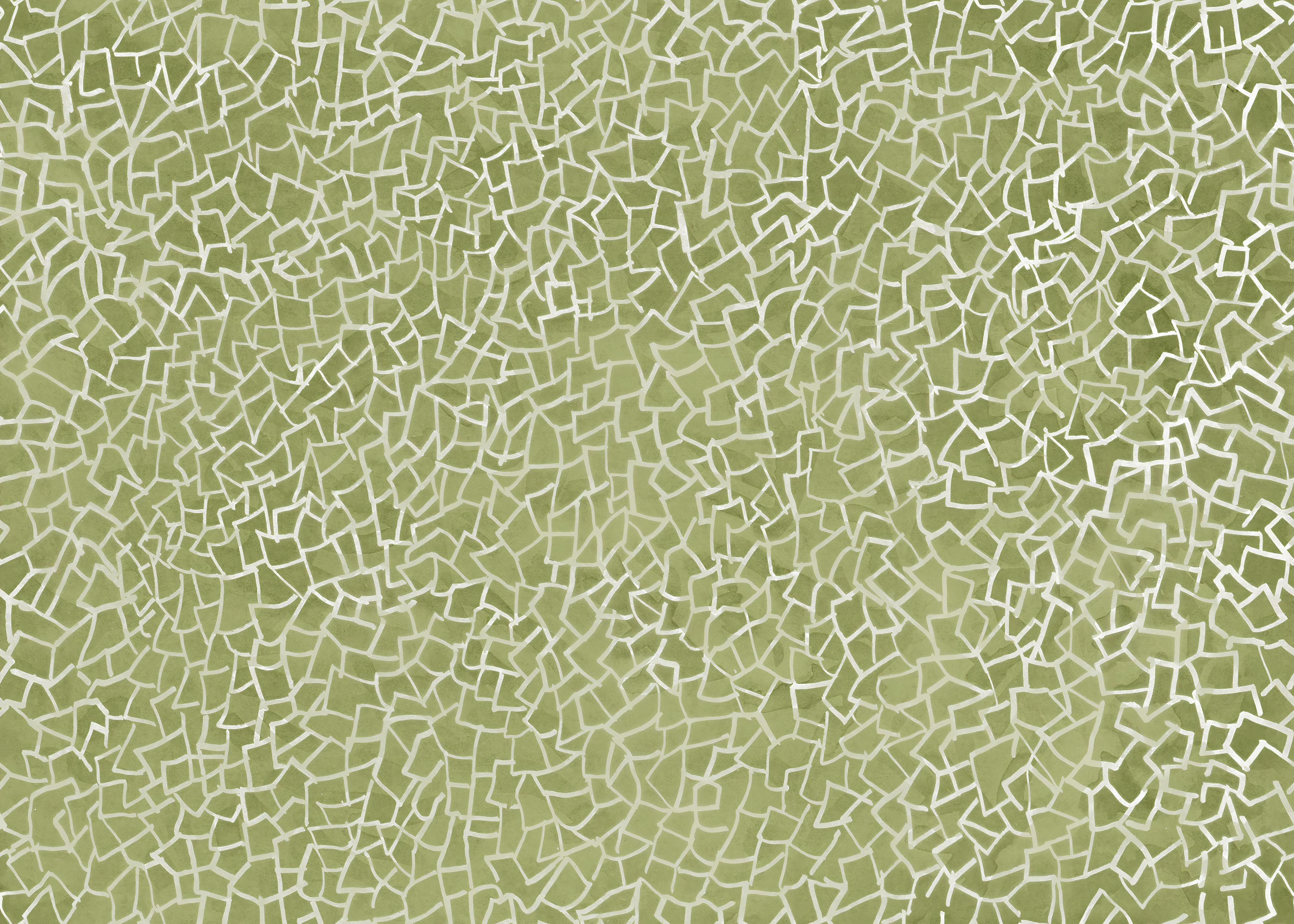 Green geometric mosaic wallpaper mural with abstract white lines.