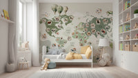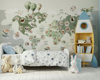 Transform any kid's room into an explorer's paradise with this endearing animal-themed world map wallpaper for walls. Gentle, hand-drawn illustrations of animals and modes of transportation capture the spirit of adventure. The muted sage and cream hues lend a soothing and calming atmosphere to nurseries and playrooms alike. This design enhances learning through visual storytelling and adds a whimsical touch, making it a perfect backdrop for imaginative play and discovery.