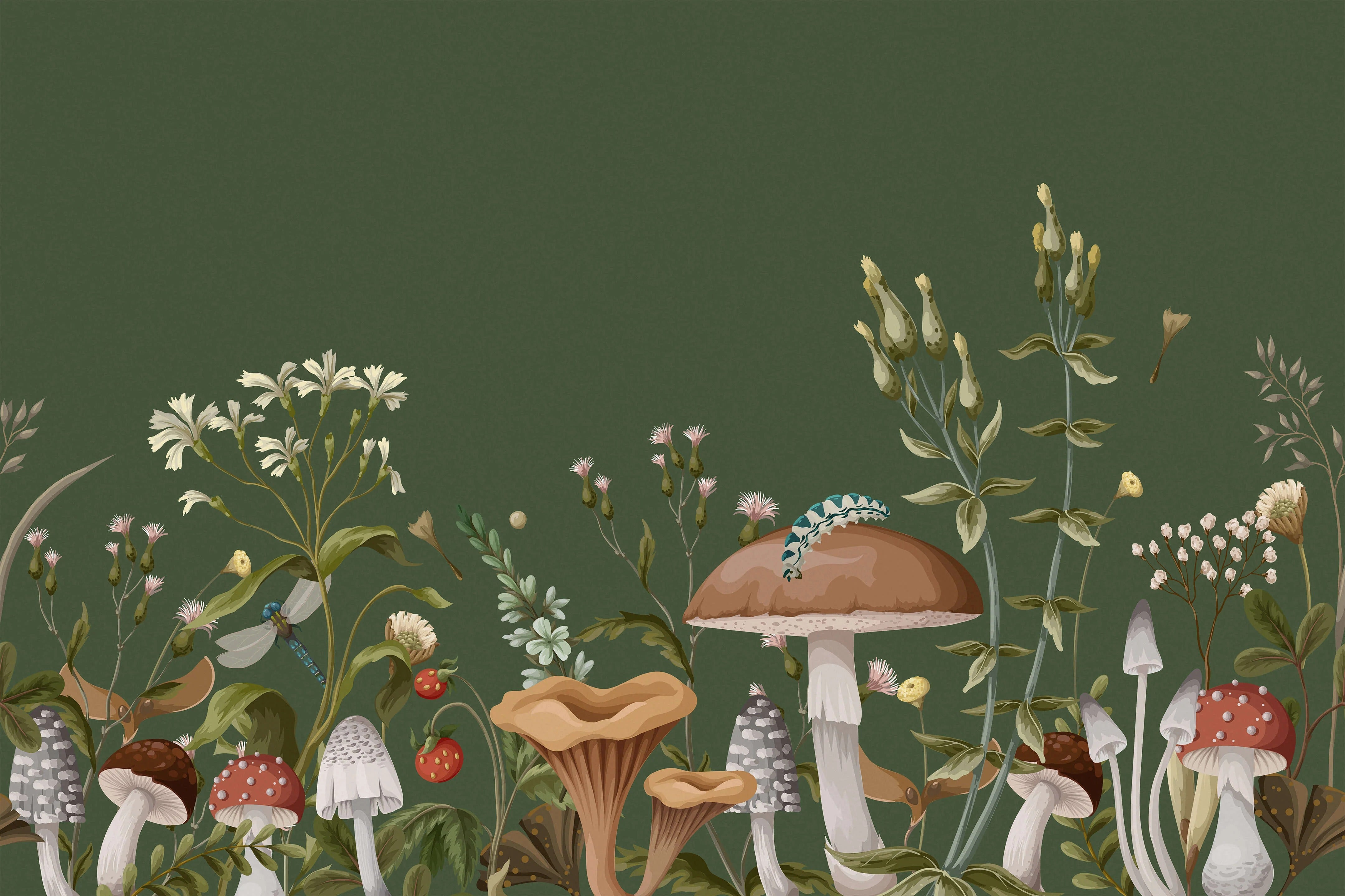 Green Mushroom Garden Wallpaper Mural for cozy interiors