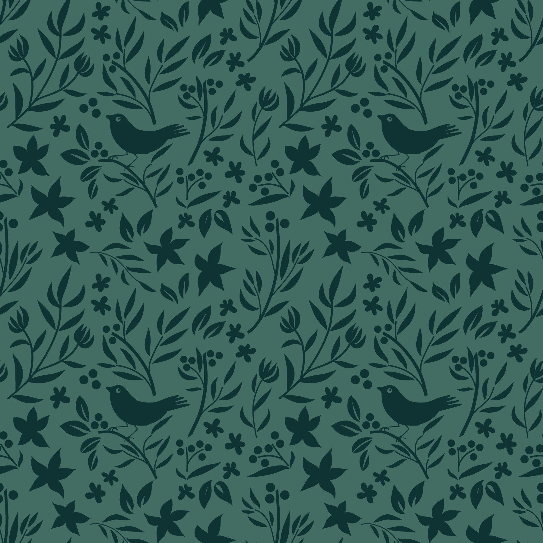 Green Scandinavian Folk Bird Botanical Theme Wallpaper⁠