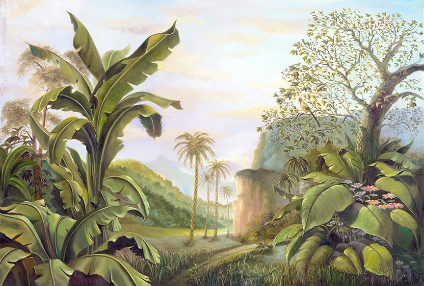 Enchanting rainforest mural with medieval theme