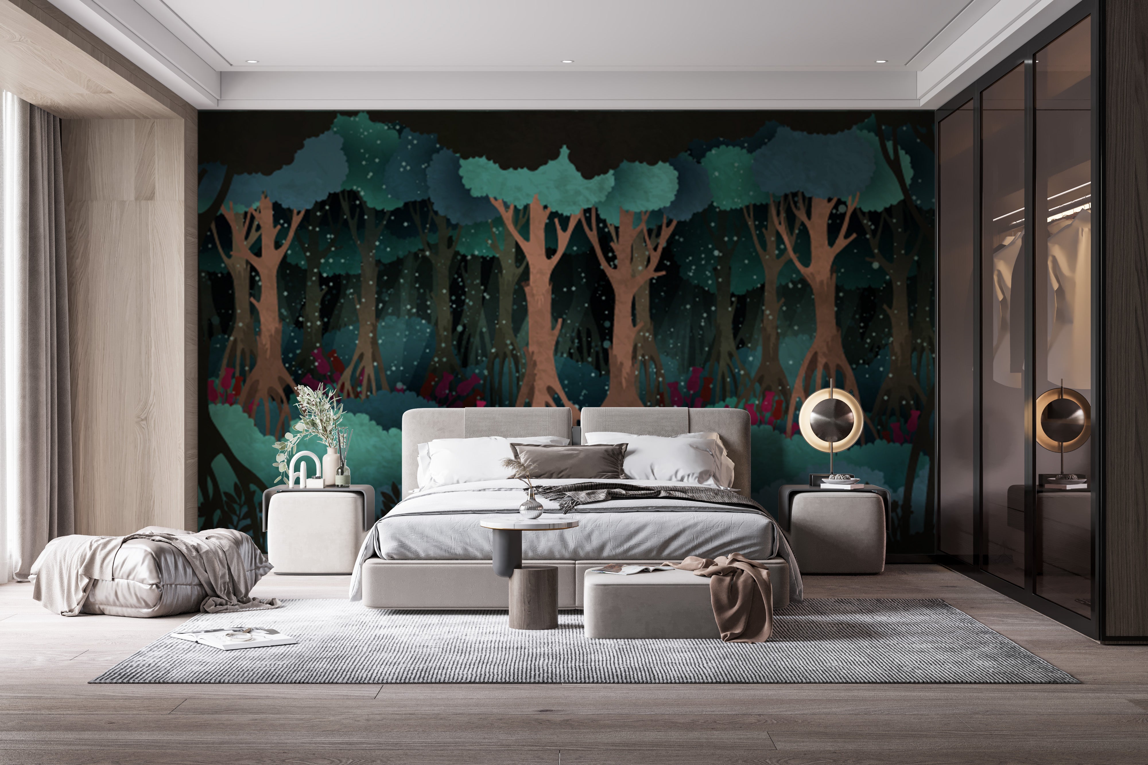 Enchanting green forest wall mural design