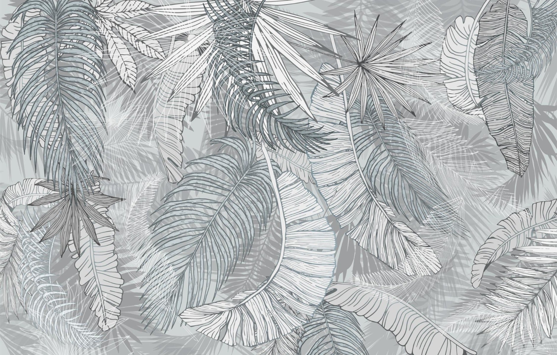 Grey & White Charcoal Leafy Illustrated Wallpaper Murals - Giffywalls
