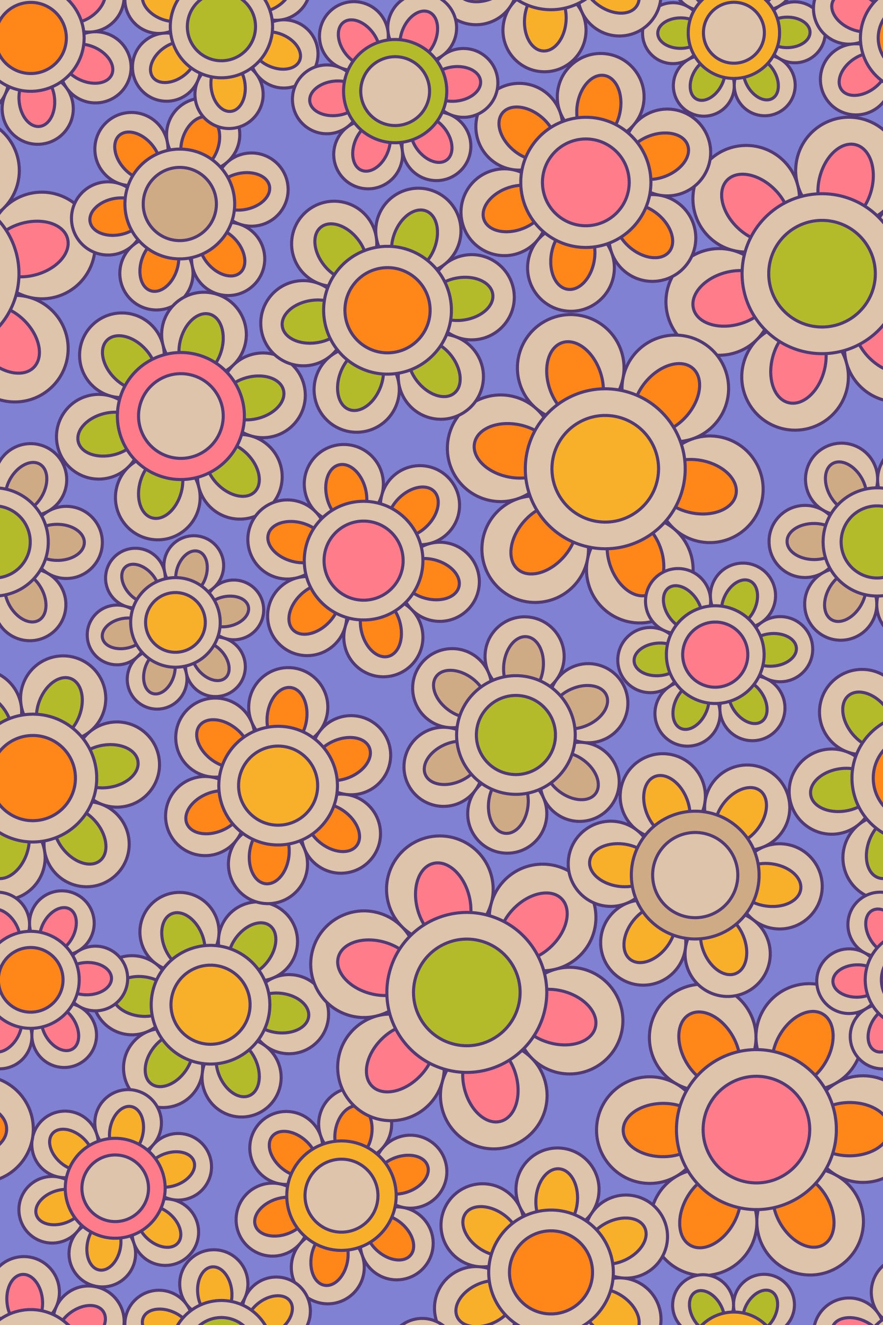Groovy Daisies Retro 1970s Floral Orange Yellow Pink Green Purple Wallpaper⁠