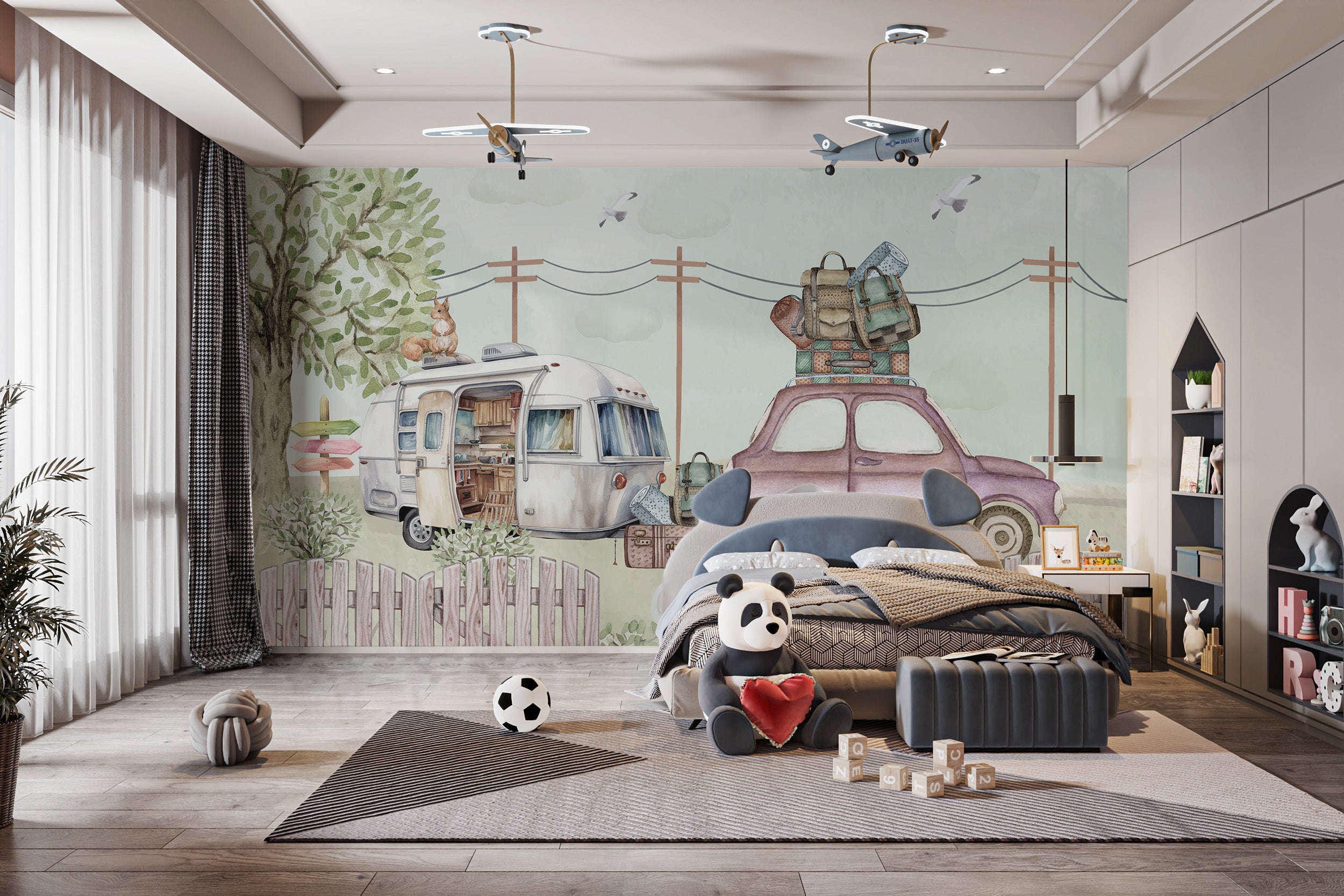 Enchanting play area wallpaper: caravan scenes