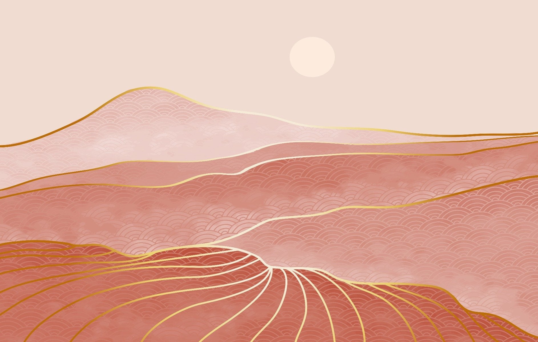 Designer Pink & Gold Mountain Wallpaper Murals - Giffywalls
