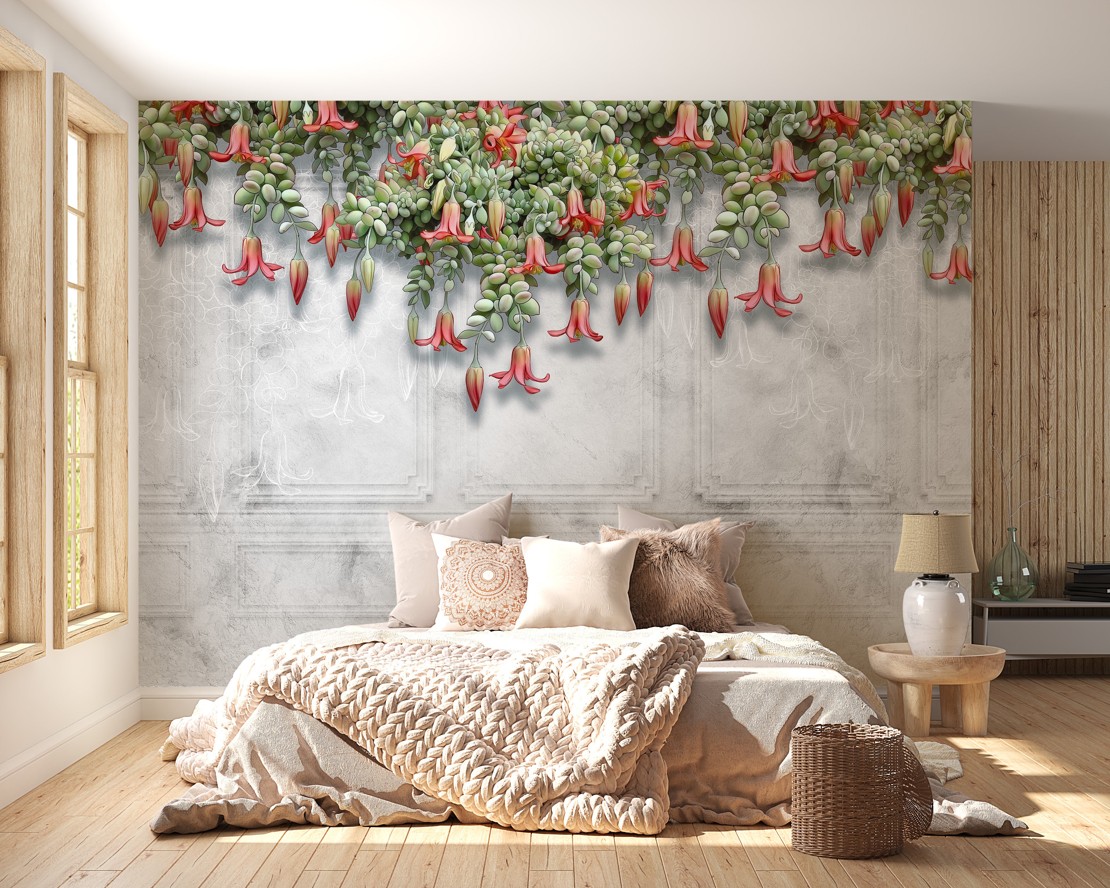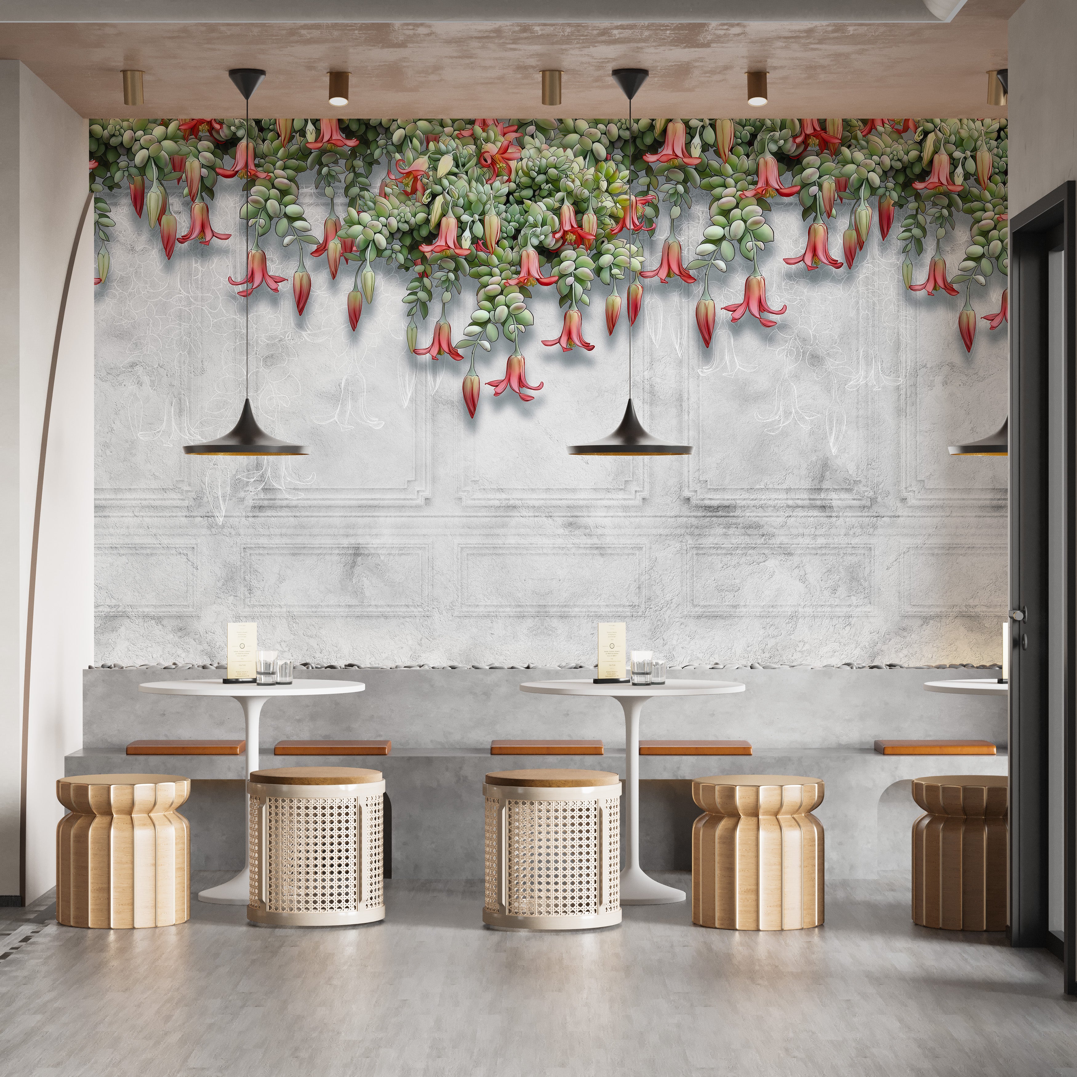 Hanging Exotic Flowers Concrete Gray Wall Murals