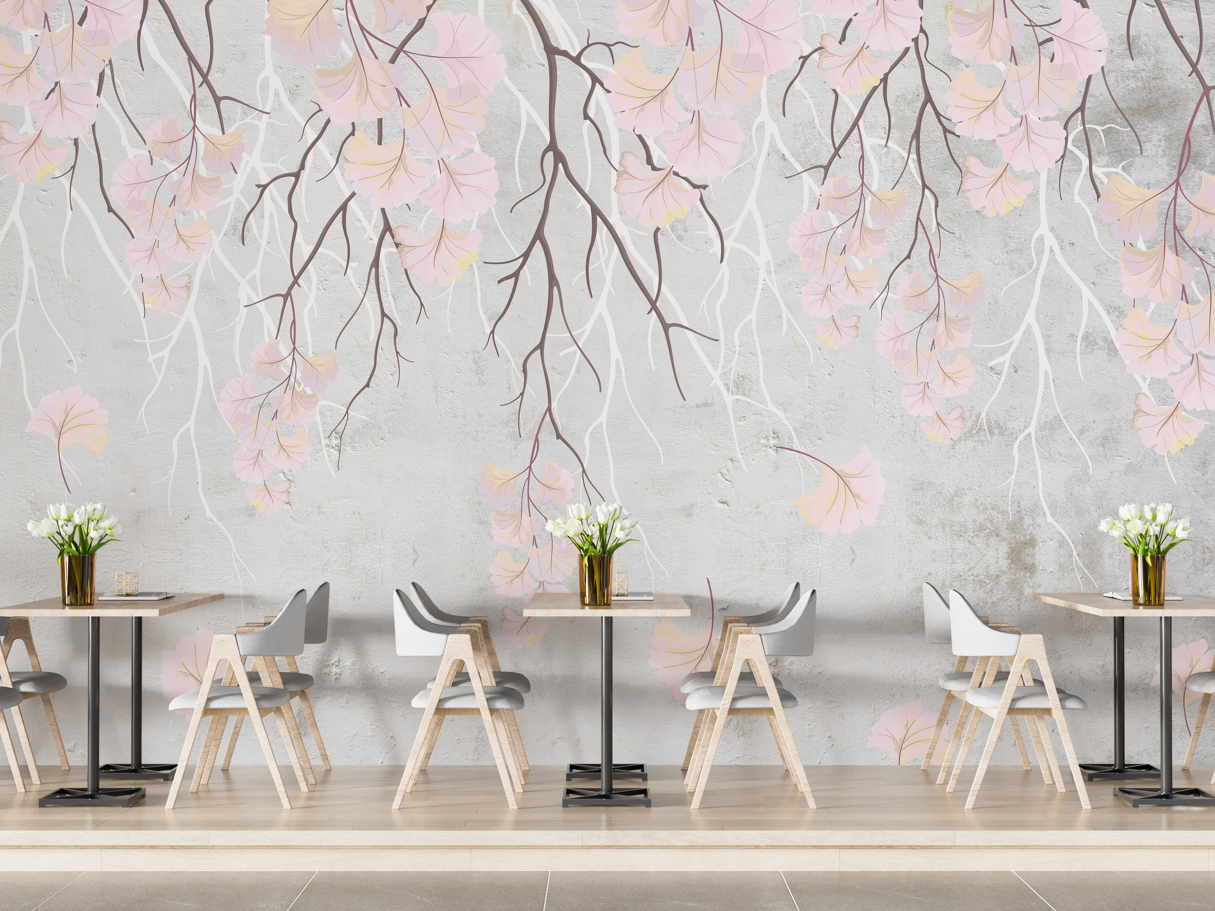 Soft hanging pink flowers mural for walls