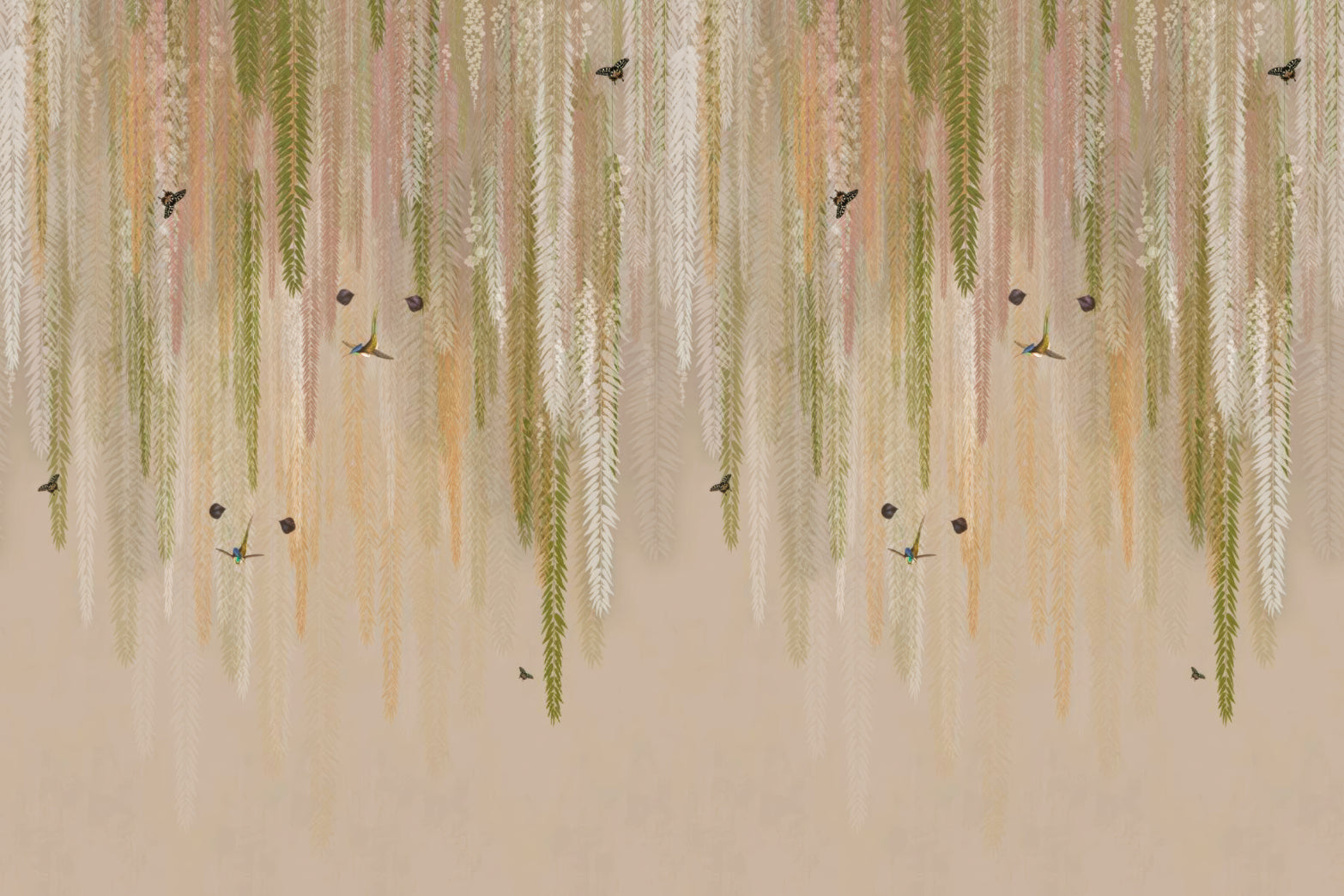 Embrace the understated elegance of the hanging wisteria wallpaper mural to freshen up your bedroom environment. Each panel portrays a realistic depiction of wisteria, providing a naturalistic and soothing visual to wake up to each morning. This bedroom wallpaper is more than just a design choice, it's a lifestyle upgrade, promising a serene retreat from the everyday hustle. Tailored to fit any bedroom size, it's ideal for creating a cohesive look throughout your space. Opt for this mural to give your bedroom a serene makeover. Secure your order today and relish in the new look of your personal haven.