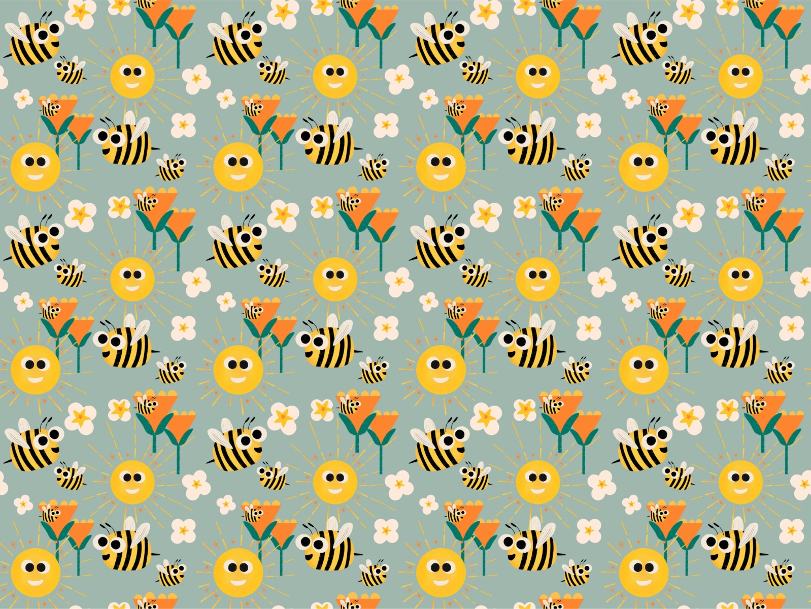Happy Bees and Sunshine Blue Cadet Wallpaper