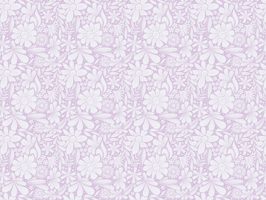 Soft and serene happy blooms wallpaper in a lilac hue.