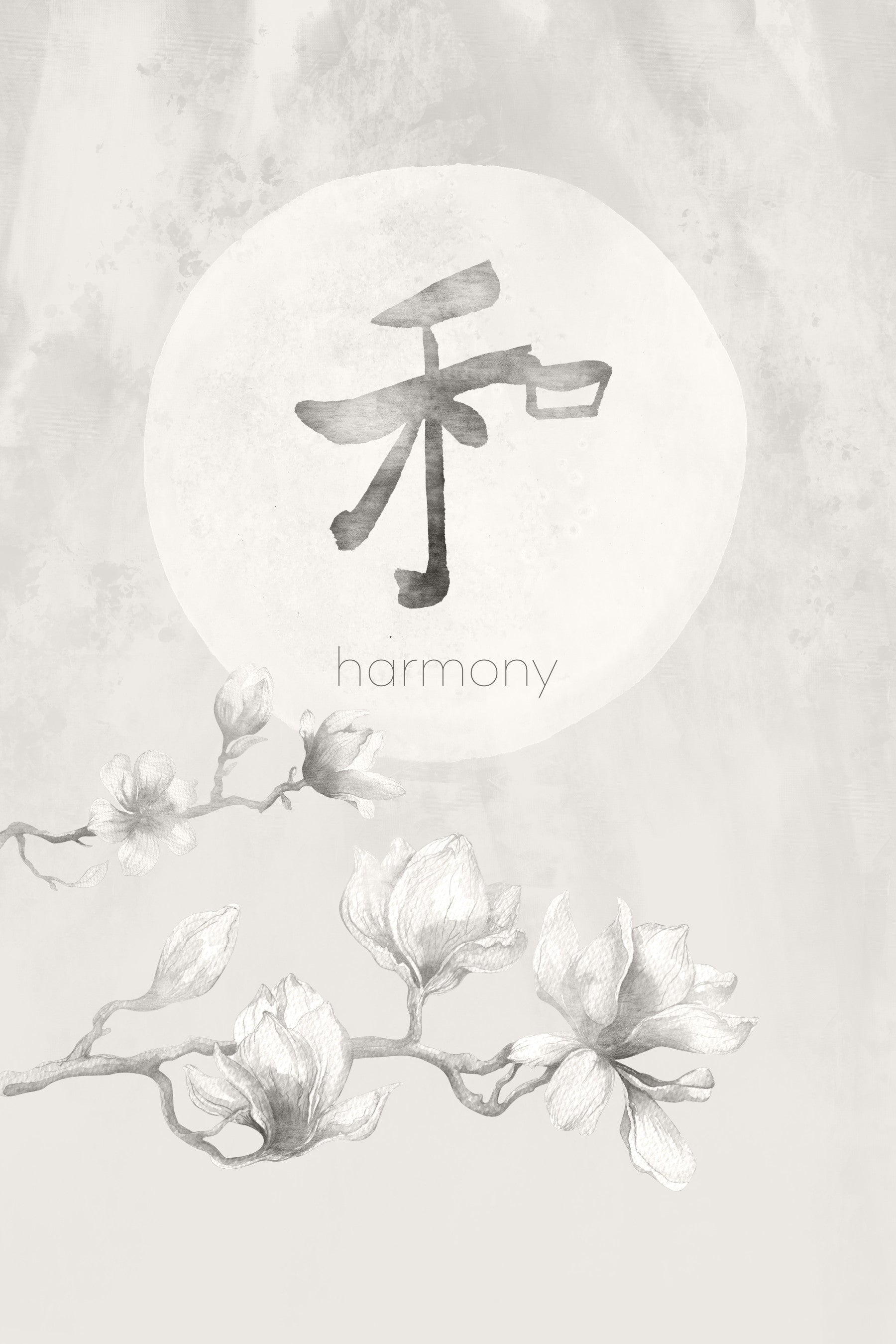 Embrace the tranquility of "Harmony - Japandi Style", a wallpaper that seamlessly blends Japanese minimalism with Scandinavian functionality. A serene watercolor backdrop hosts a delicate magnolia branch, symbolizing beauty and resilience. The prominent Kanji character, meaning 'harmony', reinforces the theme of balance and peace. The subtle textures and muted color palette of soft grays create a calming and sophisticated aesthetic, perfect for creating a relaxing and mindful space. This design evokes a sense of understated elegance, ideal for promoting a harmonious atmosphere in any room.