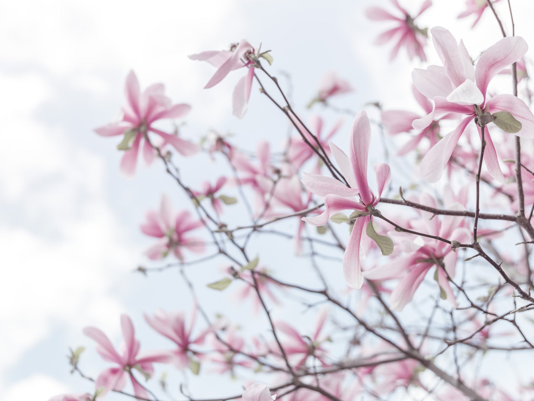 Soft pink magnolia blossoms wall mural for peaceful vibes