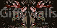 Evoke the serene beauty of Korea's Joseon dynasty with 'Heaven's Birds.' This wallpaper offers a modern interpretation of traditional Korean art, featuring elegant birds in flight amidst stylized flora. The rich, dark backdrop enhances the delicate details of the blossoms and the birds' meticulously rendered plumage. Inspired by 'Hwajodo' paintings, the symbolic harmony between nature and grace is captured. The mirrored design lends a sense of balance and tranquillity, creating a focal point that draws the eye and adds sophistication to any space. Introduce a touch of historical artistry into your contemporary lifestyle with this design, perfectly embodying the timeless appeal of Korean aesthetics. Experience the calming presence of these celestial creatures, transforming your walls into a canvas of cultural richness and artistic expression. Perfect for those seeking a blend of tradition and modern elegance, 'Heaven's Birds' is more than just a wallpaper; it's a statement of refined taste.