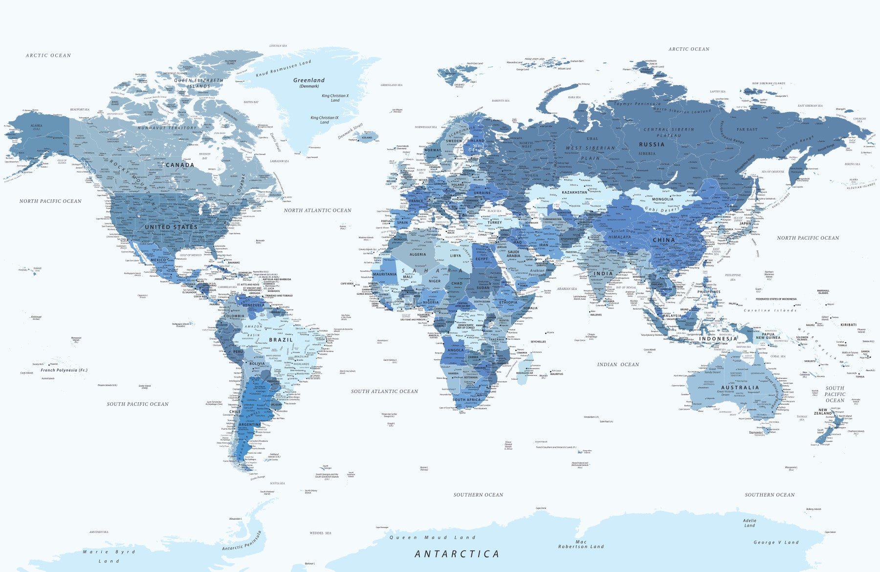 Highly Detailed World Map in Blue Wall Mural