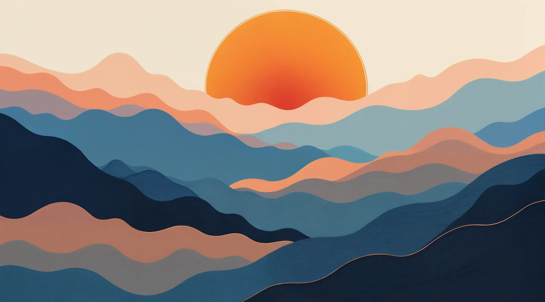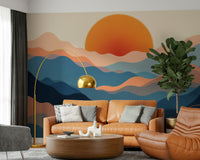Transform any room with this serene horizon design. Its gentle waves of blues and peaches evoke tranquility, bringing a calming presence to your walls. The vibrant orange sun adds a touch of warmth and energy. This wallpaper for walls works well in bedrooms, living rooms, or even a home office, creating a space that feels both inviting and peaceful. The subtle curves and soft colour palette complement modern, minimalist, or bohemian décor, enhancing the overall aesthetic with a touch of understated sophistication.