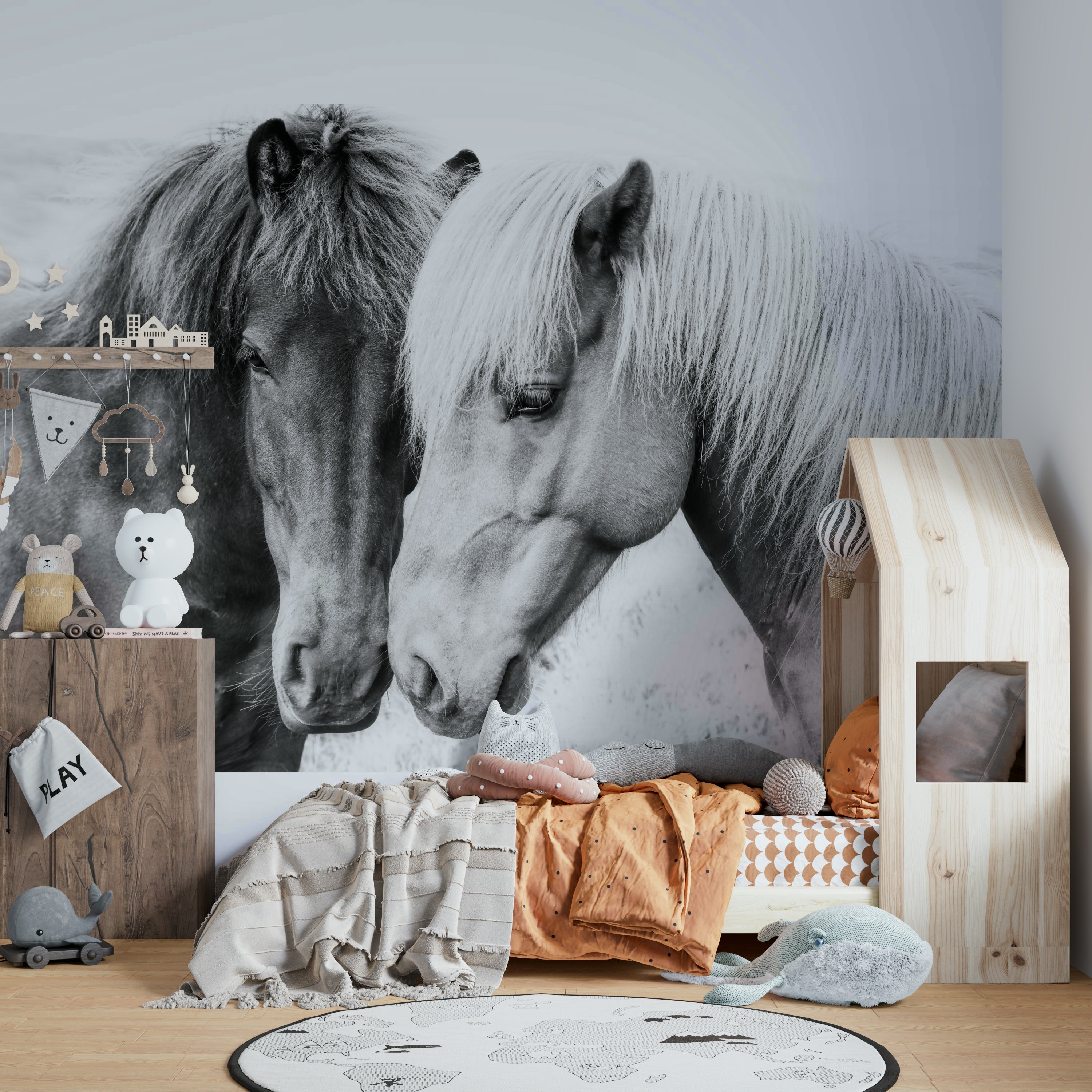 Romantic horse love mural for cozy spaces