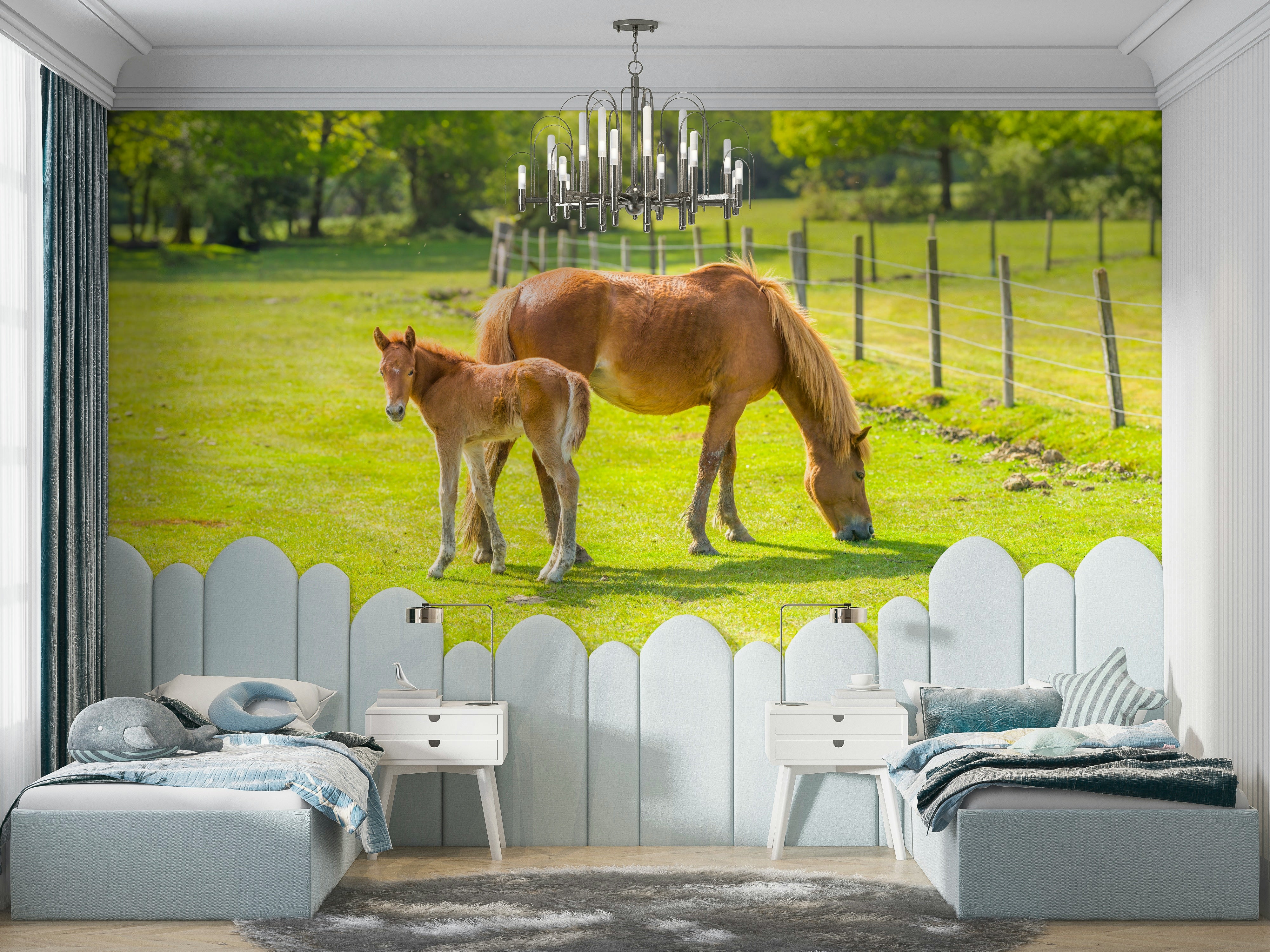 Horse and foal mural for rustic, nature-inspired rooms