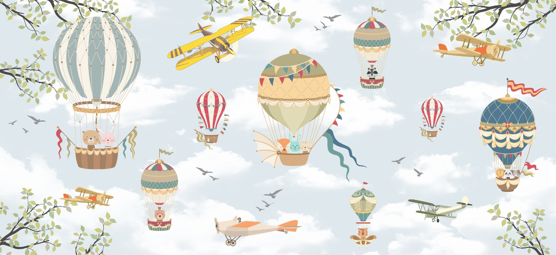 Floating Balloons Kids Wallpaper Mural - Giffywalls