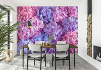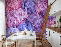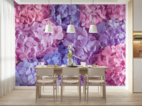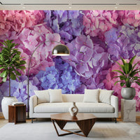 Transform your space with this stunning hydrangea wallpaper for walls. The delicate floral design features a gradient of pink, lavender, and blue hues, creating a soothing and elegant backdrop. Its close-up perspective highlights the intricate details of each petal, adding depth and texture to any room. This versatile wallpaper works well in bedrooms, living rooms, or even bathrooms, bringing a touch of nature indoors. The soft colour palette enhances natural light and complements various interior styles, from modern to traditional. Embrace floral sophistication and bring fresh charm to your home.