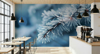 Bring the quiet beauty of winter indoors with this calming wallpaper for walls. The image captures a frost-covered branch in cool blues and whites, evoking a sense of peace. Imagine this adding a cool atmosphere to your bedroom, bathroom, or hallway. The monochromatic colour scheme creates a sophisticated look that fits great with modern and minimalist designs. It introduces the tranquillity of a winter morning into your space.