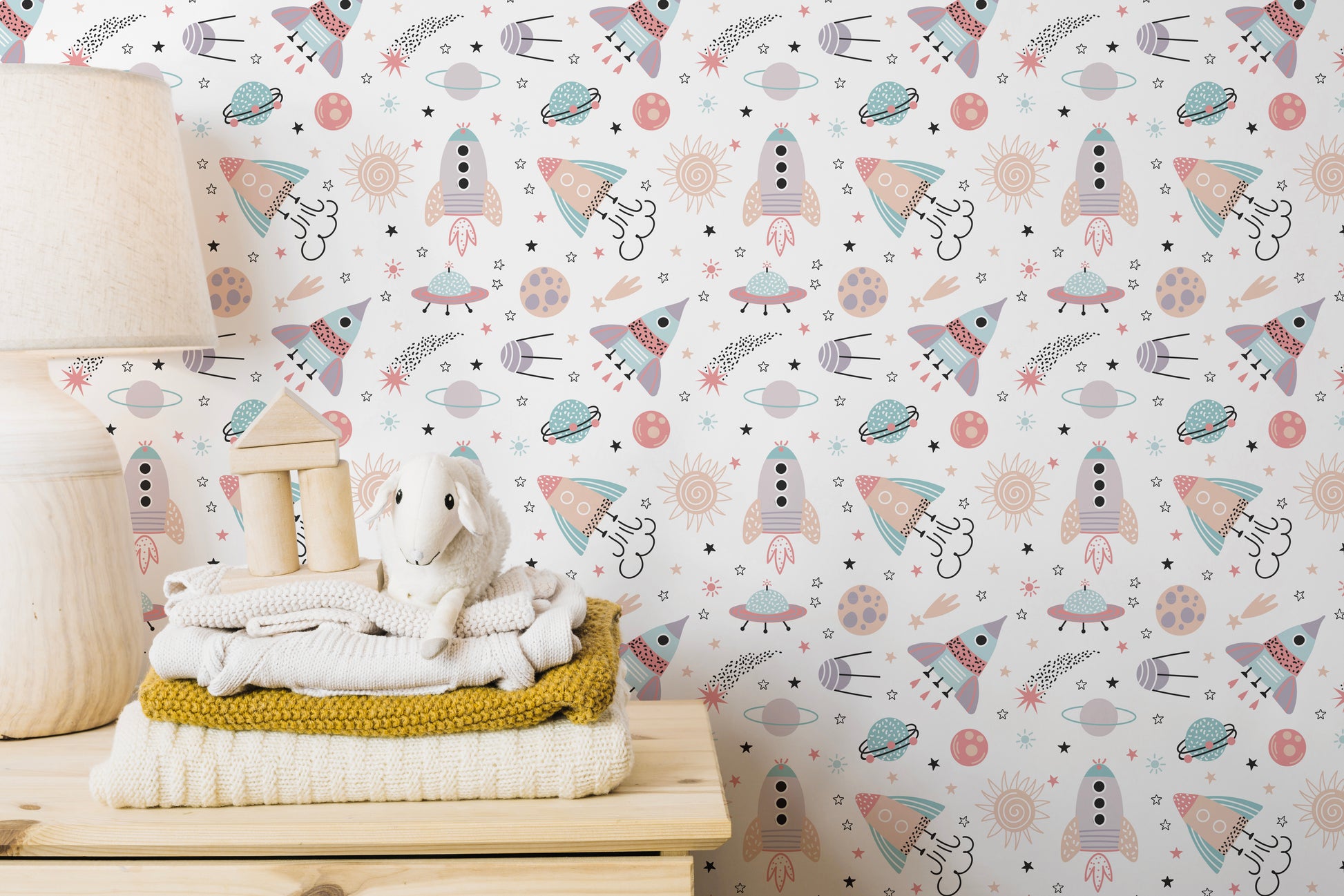 Playful space-themed wallpaper design