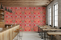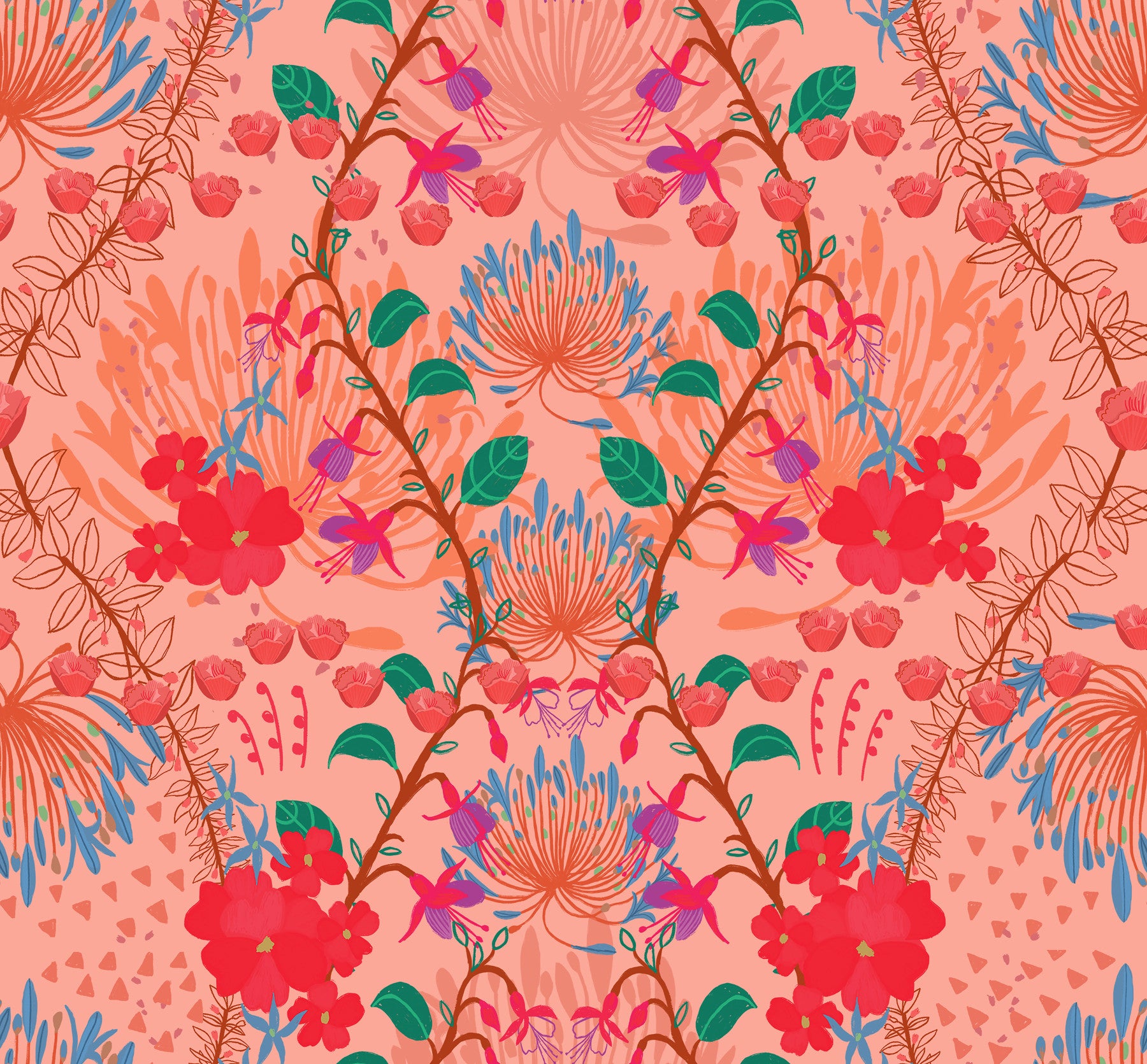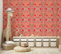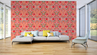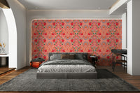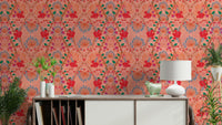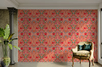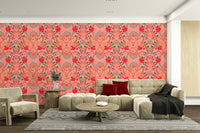 Embrace the warmth of 'Indian Summer' with this vibrant wallpaper. A kaleidoscope of stylized fuchsia, crimson, and coral flowers blossoms against a soft peach background. Intricate, hand-drawn style floral vines intertwine with textured, abstract elements, creating a rich tapestry of color and pattern. The design evokes a feeling of late summer's last burst of brilliance, capturing the essence of a season rich in color and beauty. This wallpaper is perfect for adding a touch of exotic elegance and bohemian flair to any digital device.