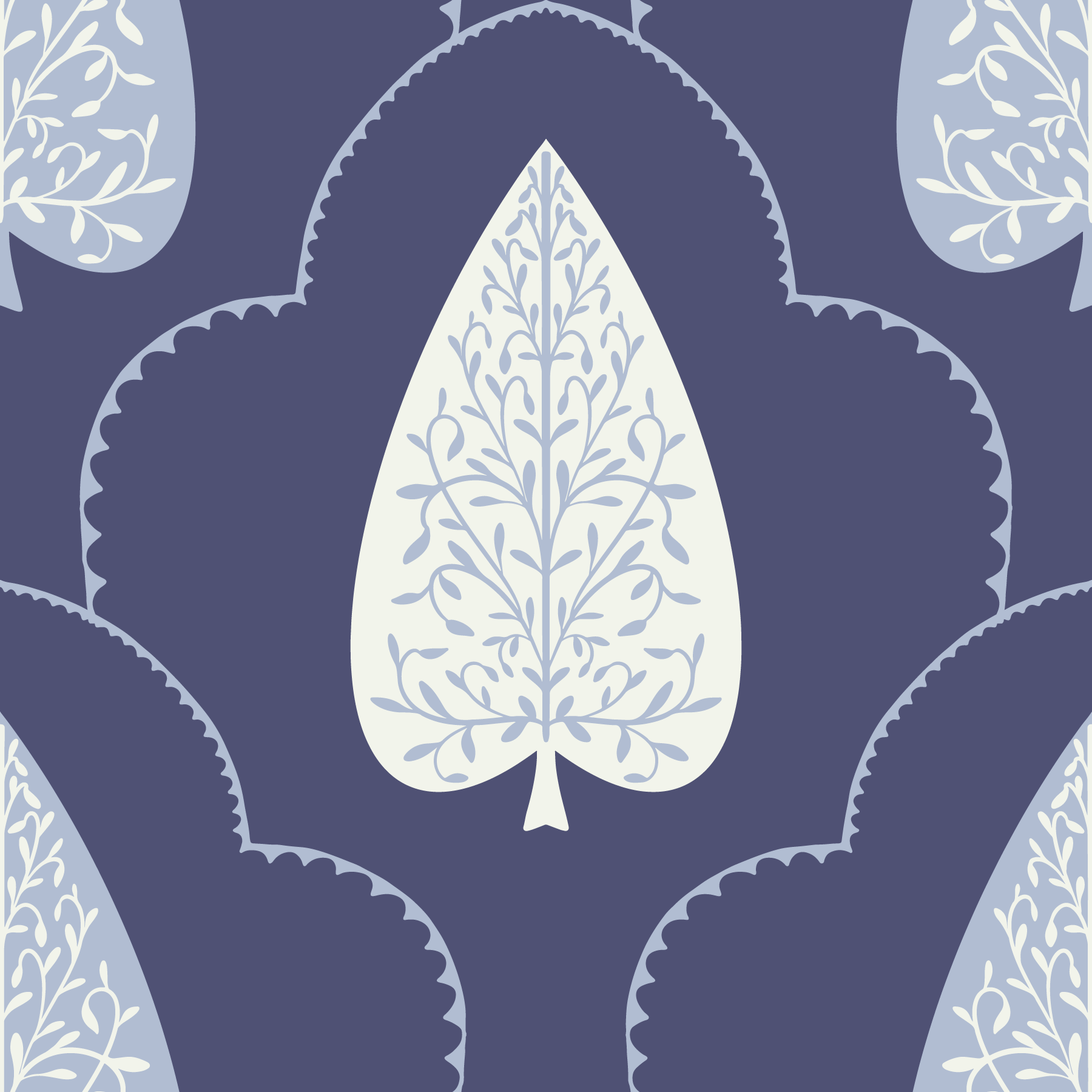 Geometric stylized leaf motif of Indigo Grove Botanical Echoes Wallpaper.