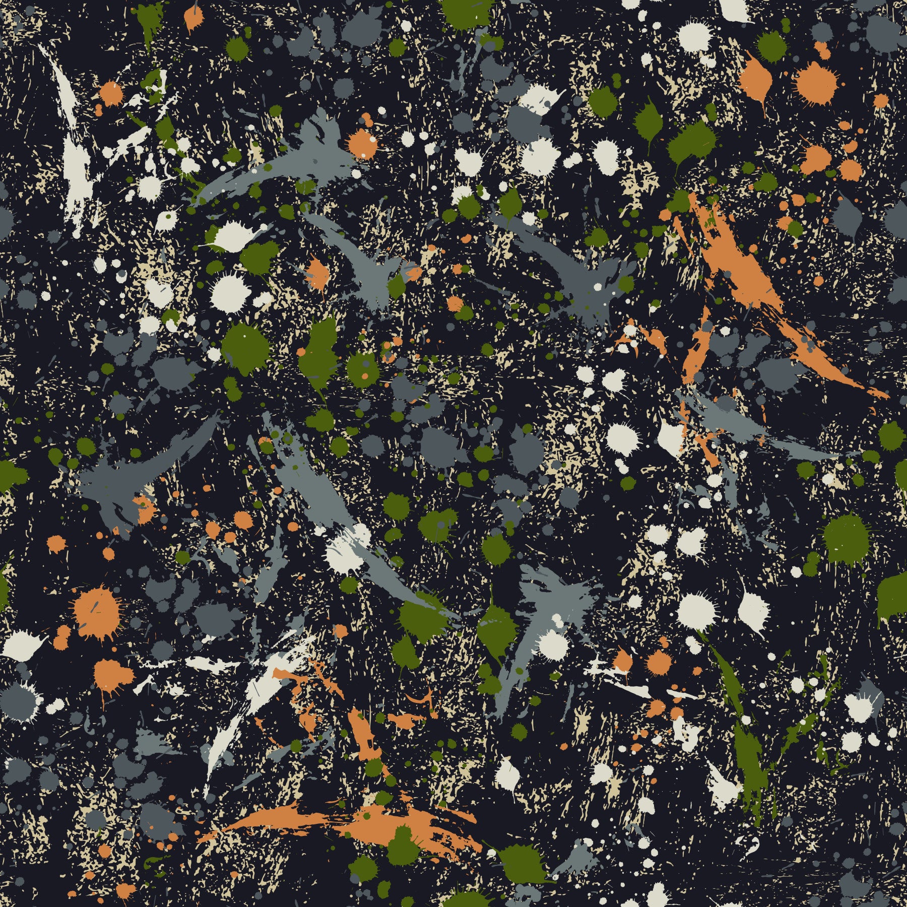 Transform your space with this dynamic ink splatter wallpaper. Observe the exciting interplay of vibrant colors like beige, grey, orange and green against a dark background. Its bold design makes a statement on any wall. This stunning wallpaper for walls enhances spaces like living rooms, home offices, or even creative studios. The ink splatter design offers an energy that adds depth and texture, creating a modern look that is both sophisticated and inspiring. Use this to provide visual interest and enhance your decor.