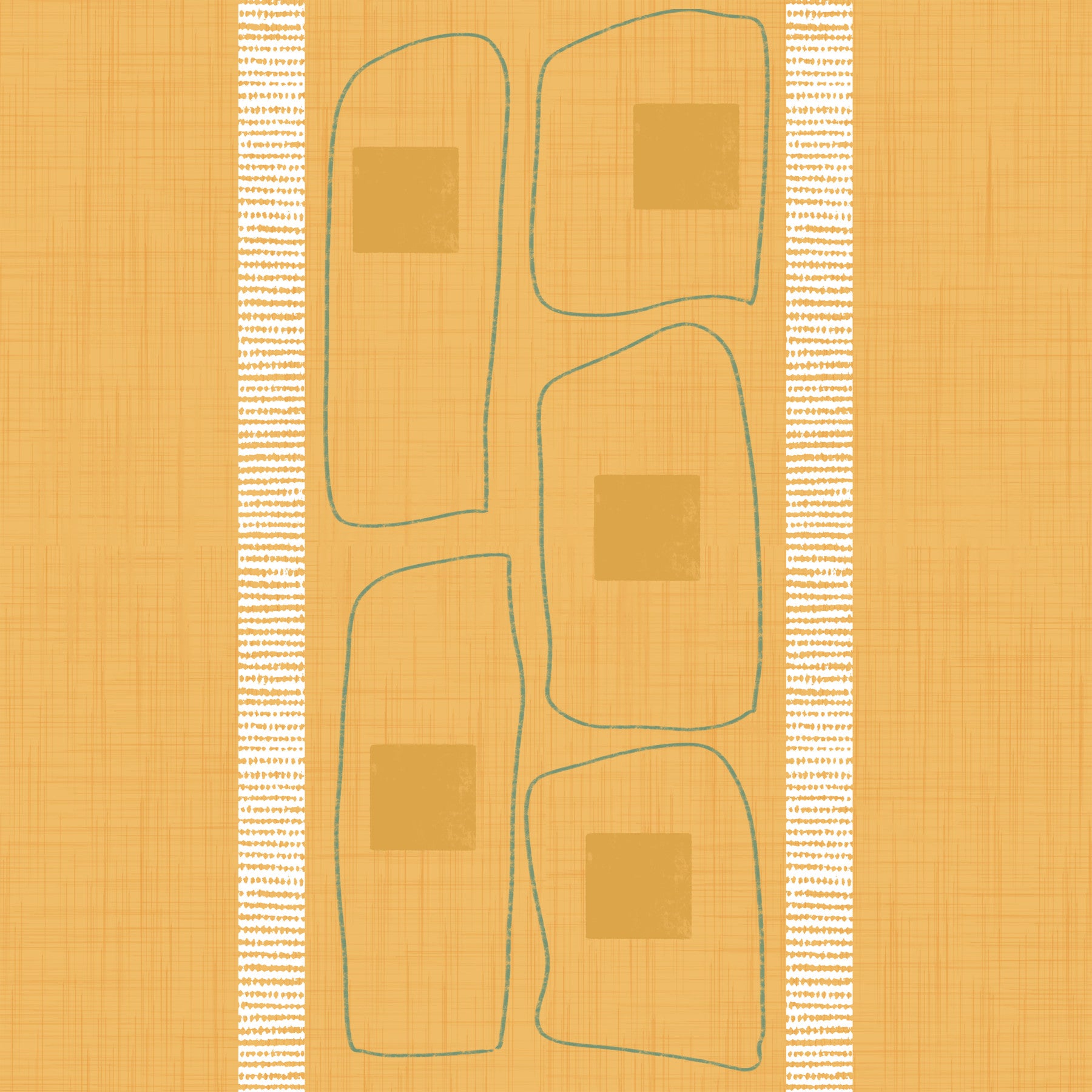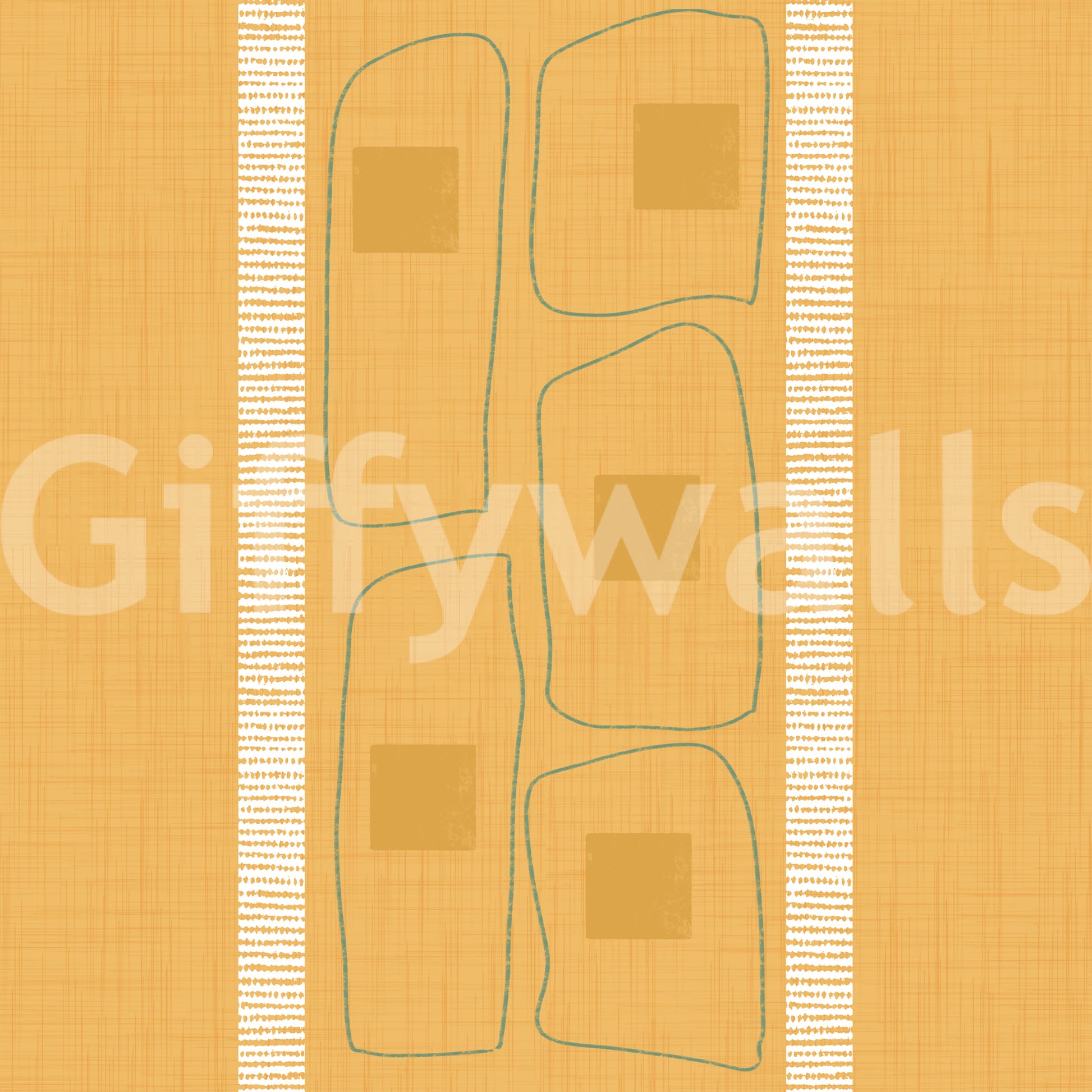 Golden ochre wallpaper featuring Japandi frame line pattern