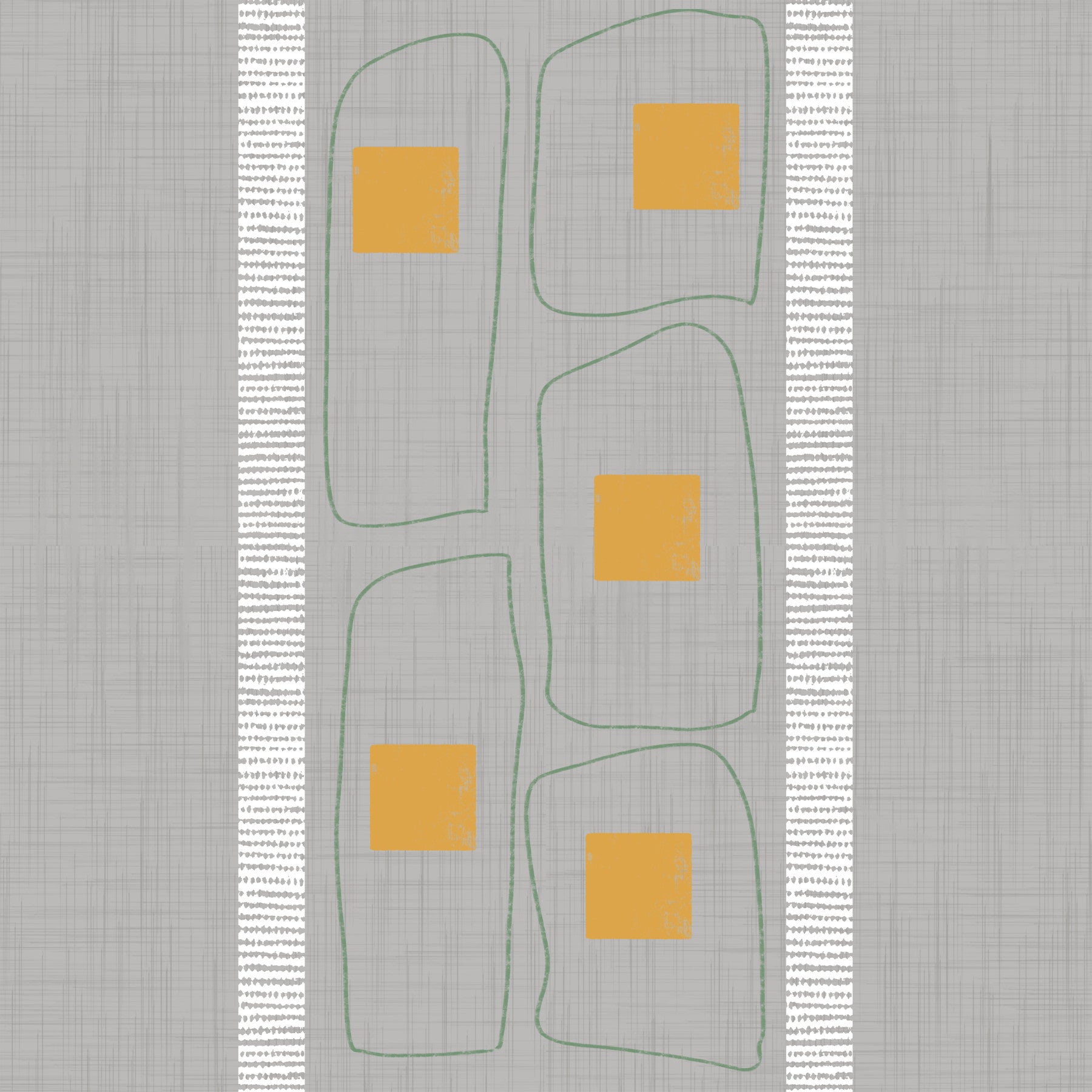 Embrace serenity with this Japandi-inspired wallpaper. Soft, muted grey tones create a calming backdrop, enhanced by subtle textured lines reminiscent of linen. Organic, sage-green curves frame warm, ochre squares, adding a touch of minimalist elegance. The delicate dotted vertical lines further refine the design, creating a balanced and tranquil atmosphere. This wallpaper perfectly blends Japanese simplicity with Scandinavian softness, offering a sophisticated yet understated aesthetic for your digital devices.