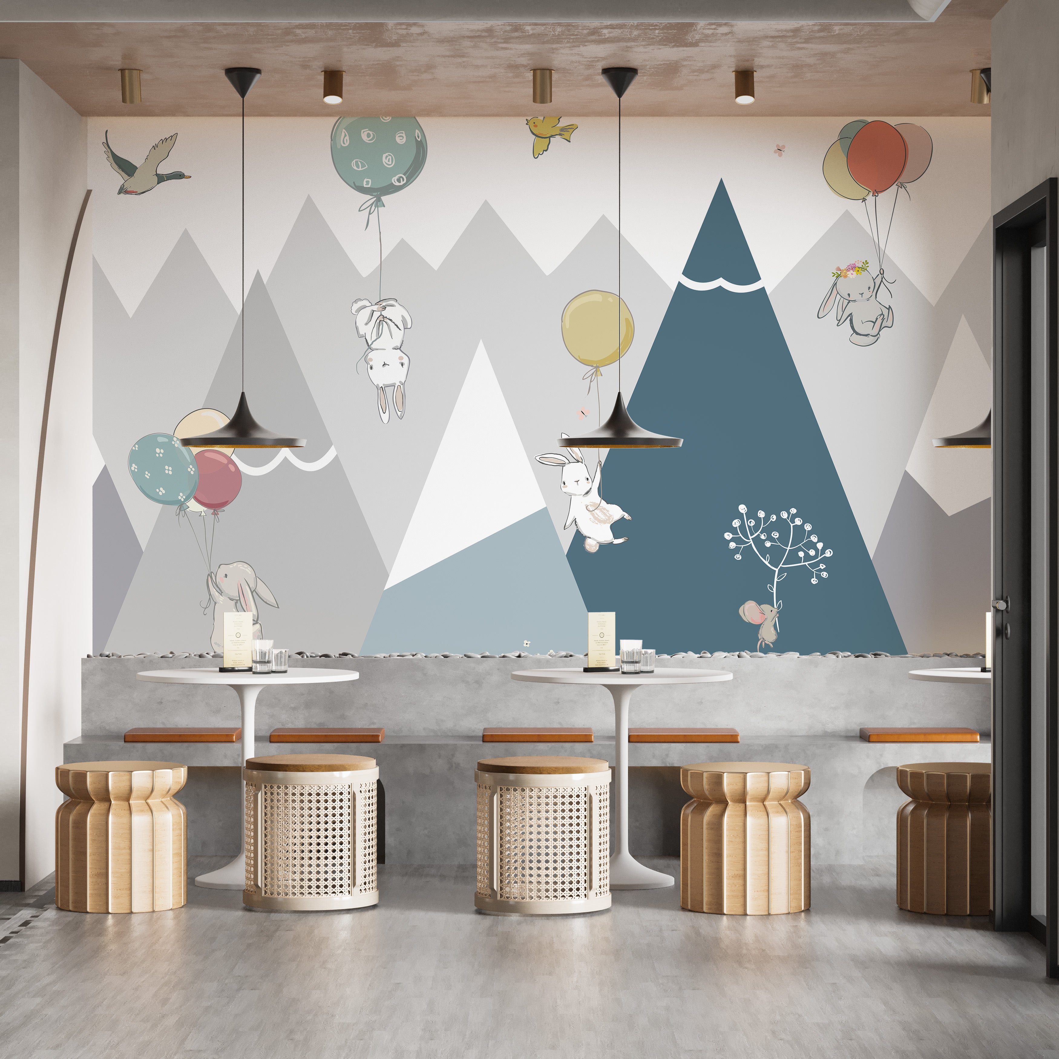 Playful Rabbits with Balloons Wallpaper Mural for Nurseries