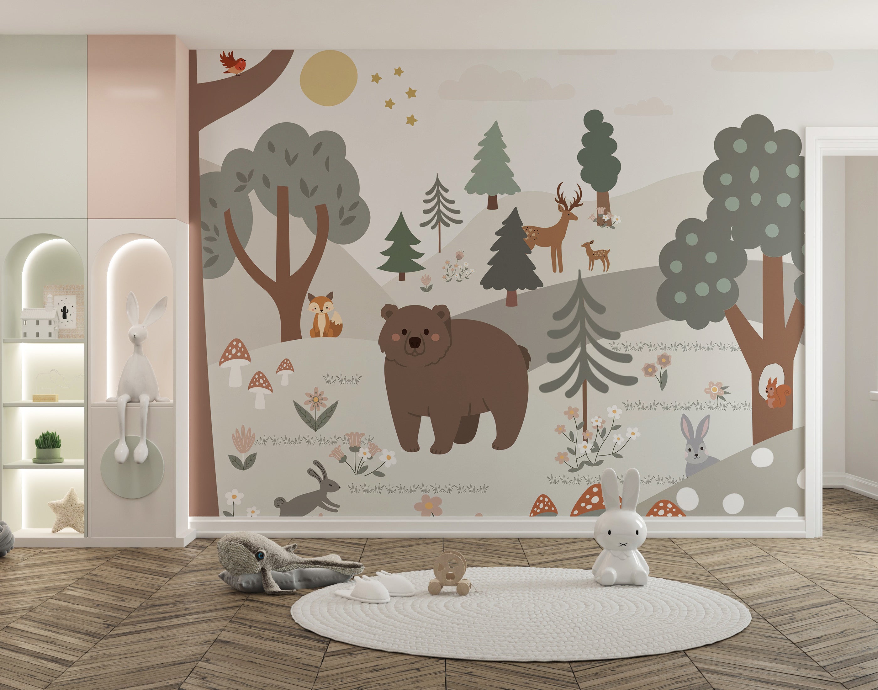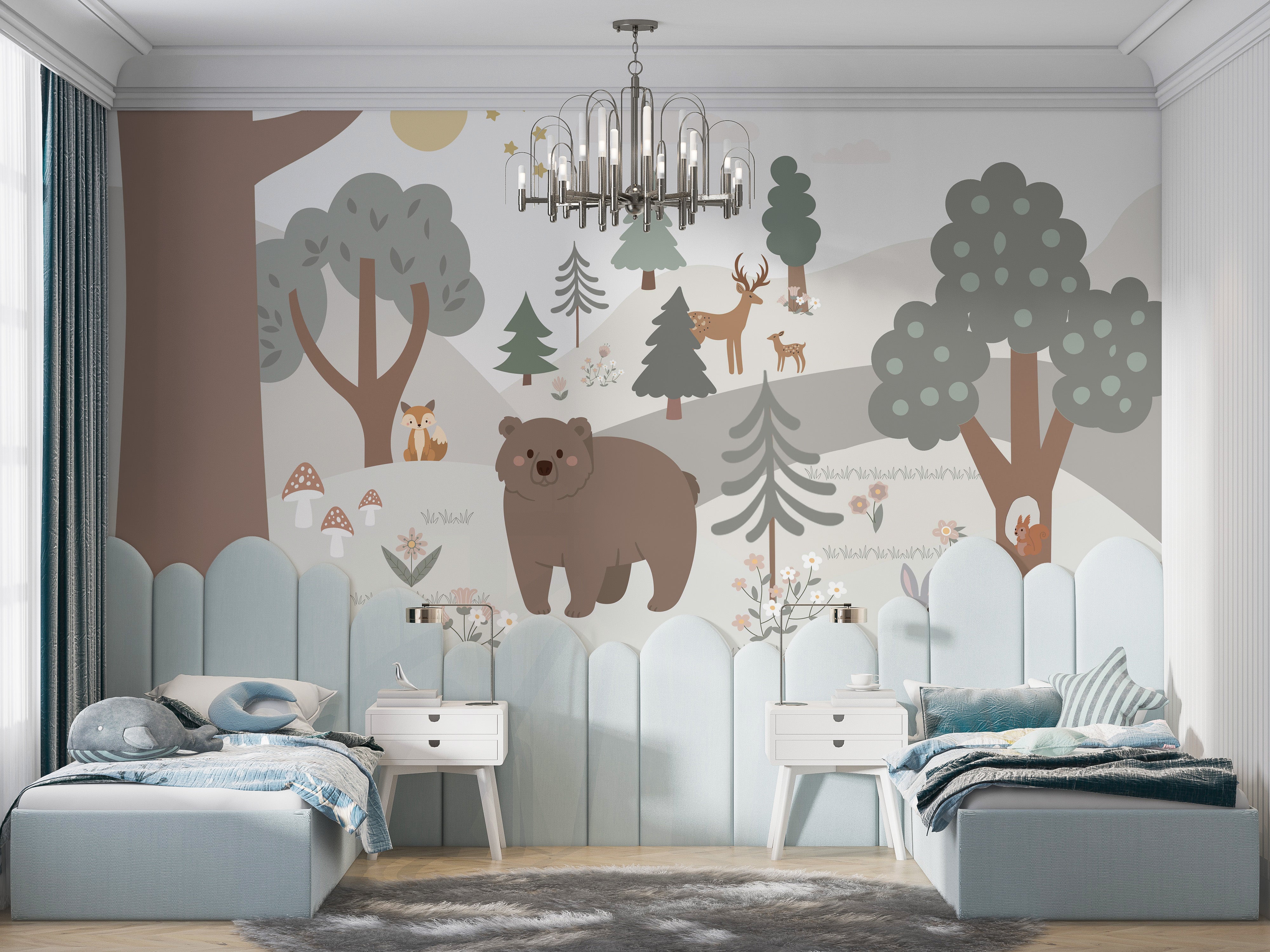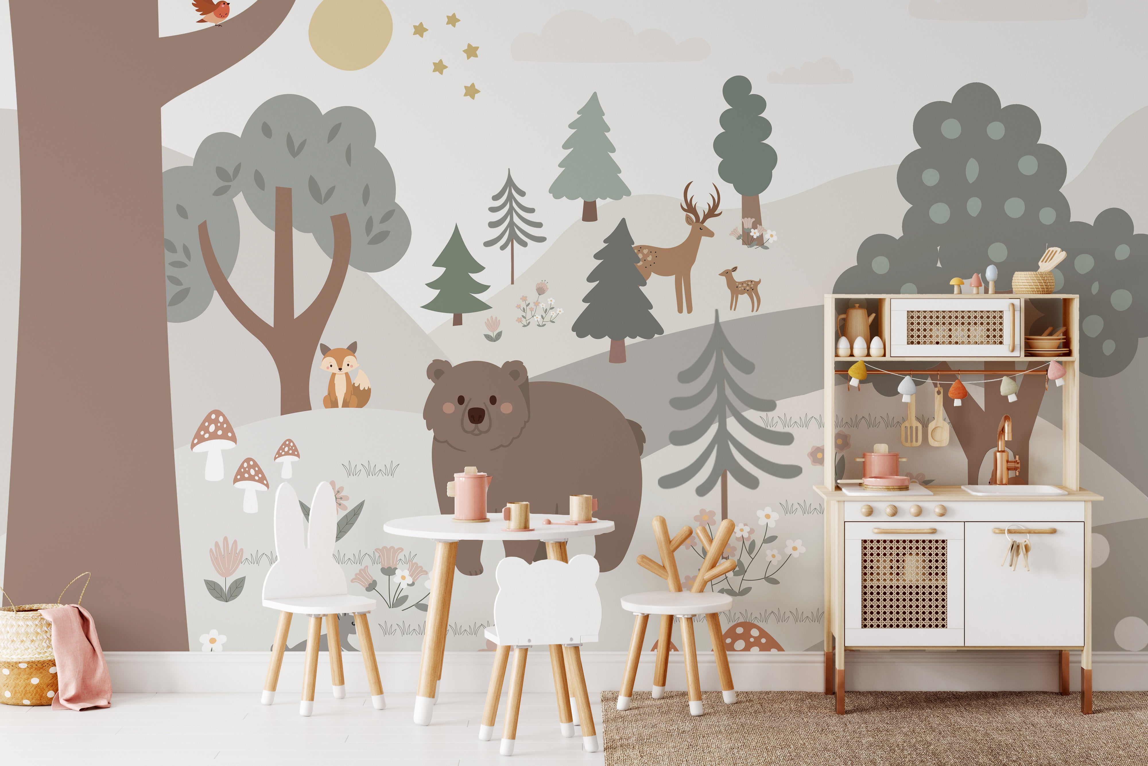 Are you looking for a way to transform your child's bedroom into a playful, adventurous space that will inspire their imagination? Look no further than our cartoon jungle forest removable mural wallpaper! With its vibrant colours, whimsical designs, and captivating scenes of bears, monkeys, and lions, this wallpaper is the perfect addition to any kid's room. But don't worry about commitment - our kids wallpaper is removable without damaging your walls, giving you the flexibility to change up your space whenever you desire. Let your child's imagination run wild as they explore the intricacies of the jungle right from the comfort of their room!