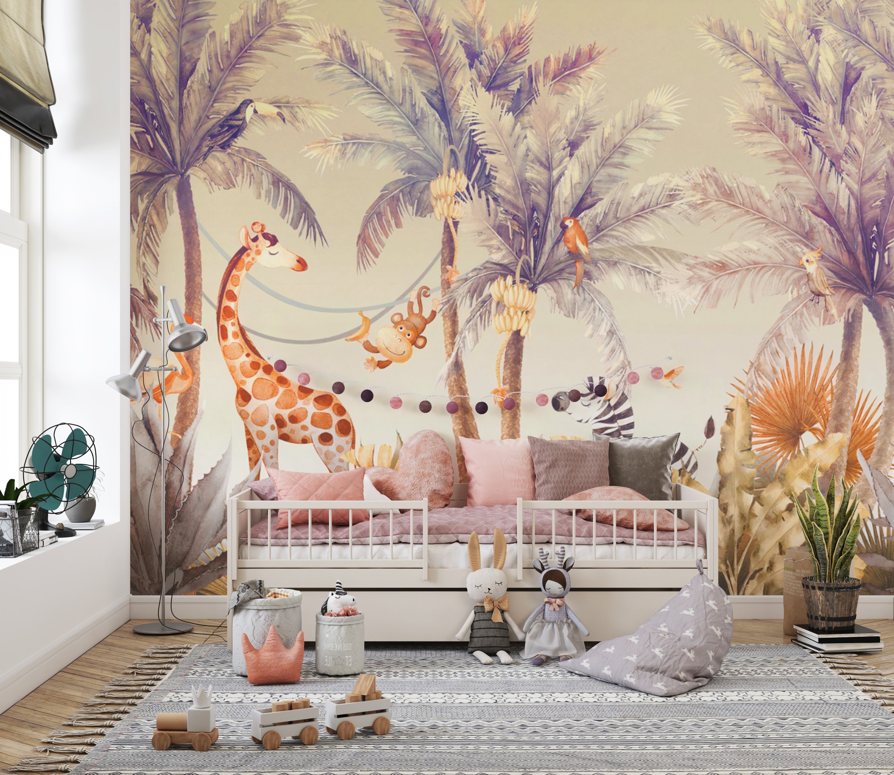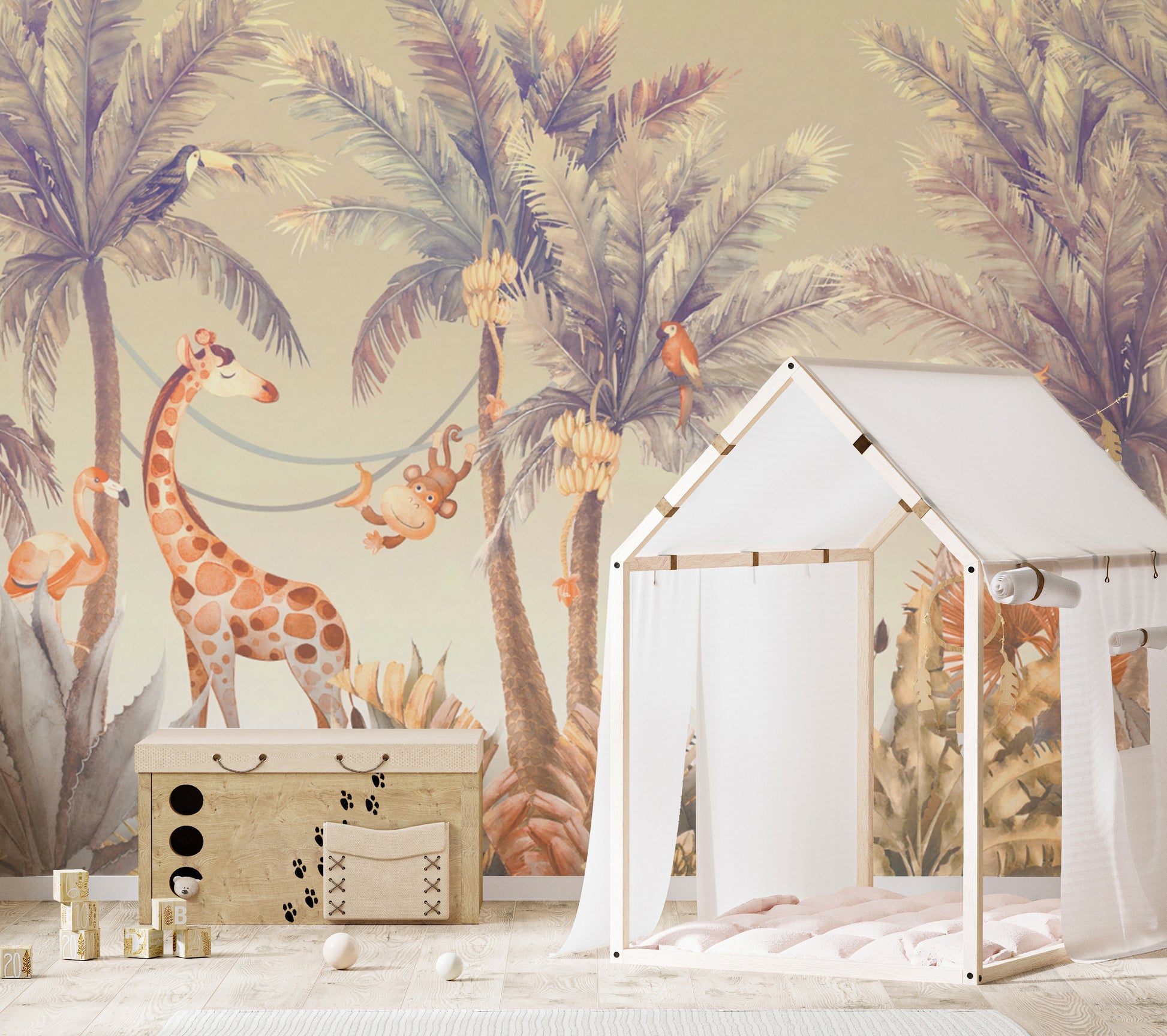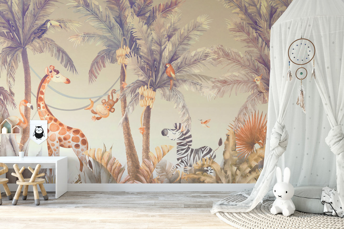 Immerse yourself in the enchanting allure of the jungle jubilation odyssey mural wallpaper. An extraordinary masterpiece, this jungle animal wallpaper transports you to a tropical paradise where the lush green foliage whispers the tales of mystical jungles and exotic animals roam freely in their natural habitat. Every detail, meticulously crafted, invites you to embark on a captivating odyssey of exploration and wonder.