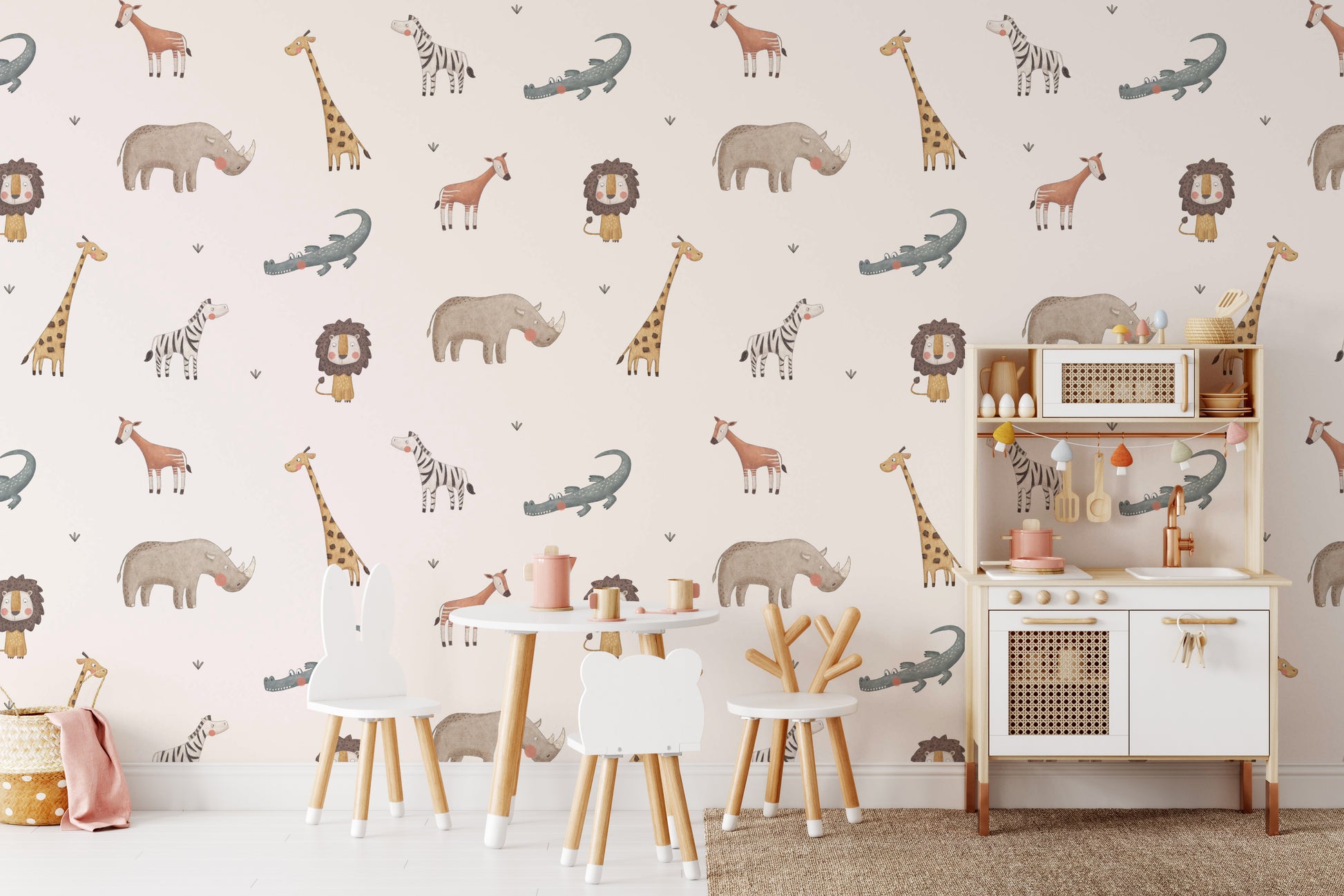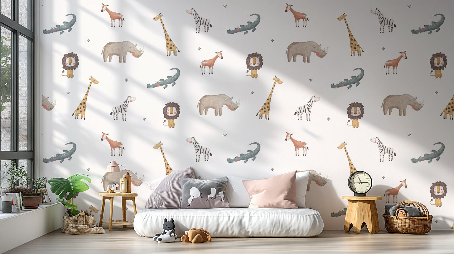 Bring the adventure of the jungle into your child's room with our Jungle Safari Animals wallpaper. This vibrant and playful kids room wallpaper features an array of jungle animals, designed to captivate and inspire young imaginations. Perfect for kids' rooms, this jungle wallpaper creates a lively and engaging environment. Its high-quality material ensures durability and easy maintenance, making it a practical choice for busy households. Easy to apply, it transforms your child's space into a thrilling safari adventure. Ideal for creating a fun and educational atmosphere, it helps children learn about different animals while enjoying their playful and colorful presence. Purchase our jungle safari animal wallpaper today and turn your kid's room into a fun, wildlife-inspired sanctuary!