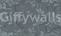 Serene wall mural featuring a blue-toned sketch of jungle foliage
