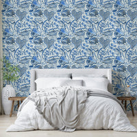 Nature-inspired tropical wallpaper in blue tones