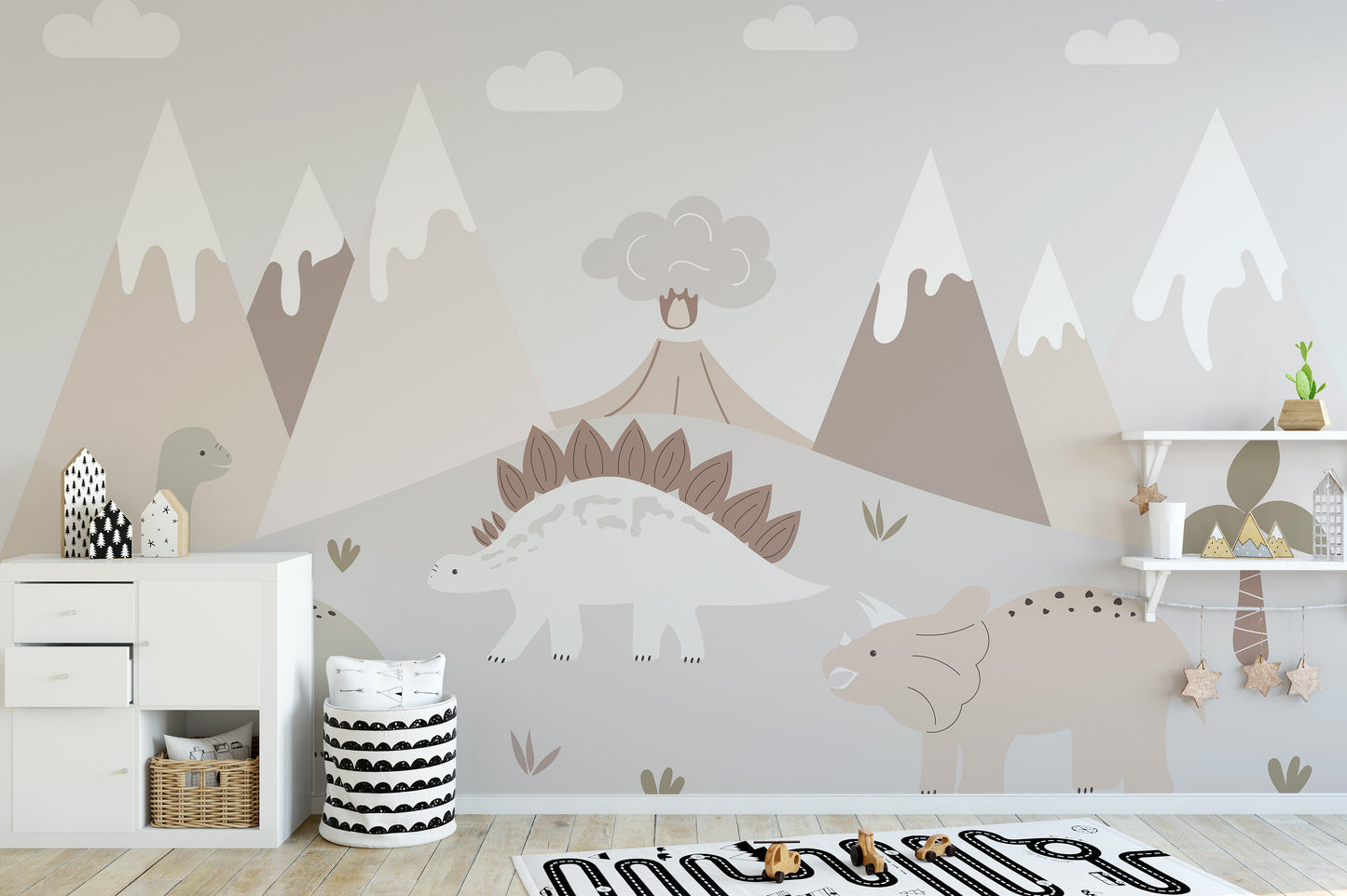 Bring a prehistoric touch to children's bedrooms with the jurassic landscape wall mural. Ideal for kids room wallpaper mural enthusiasts, this dinosaur wallpaper mural captures the wonder of ancient giants in a playful, artful display. Interior Designers and Decorators recommend this captivating scene for its ability to spark young imaginations and add a dash of adventure to any room. With its easy application, this mural is a favourite for creating a dynamic backdrop that young explorers will love for years to come.