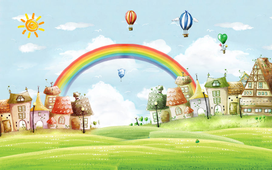 Kids City Landscape Rainbow Balloons Wallpaper Murals