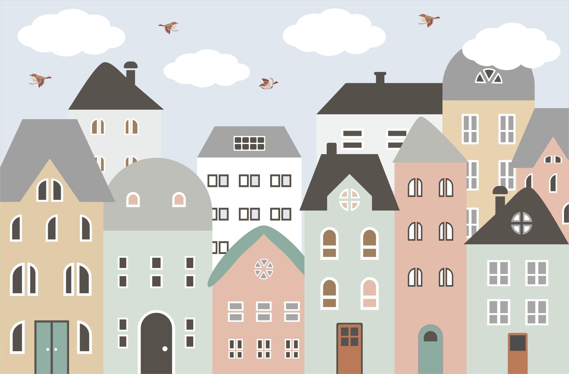 Make your child's playroom a wonderland with removable colourful houses mural wallpaper! Your kids will love having their very own town with vibrant houses that they can decorate with their personal touches. Our removable wallpaper makes it easy to switch up the look of the room whenever you and your kids feel like it. Whether you're building a cozy cottage or a towering skyscraper, this playful wallpaper provides endless possibilities for imaginative play. Add a touch of whimsy to your child's play space with this charming and easy-to-install wallpaper.