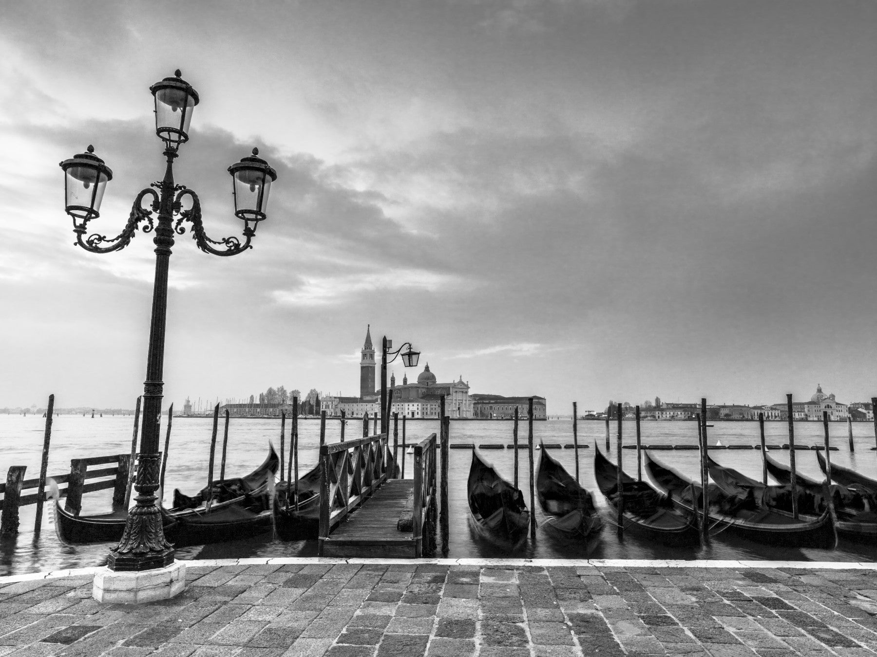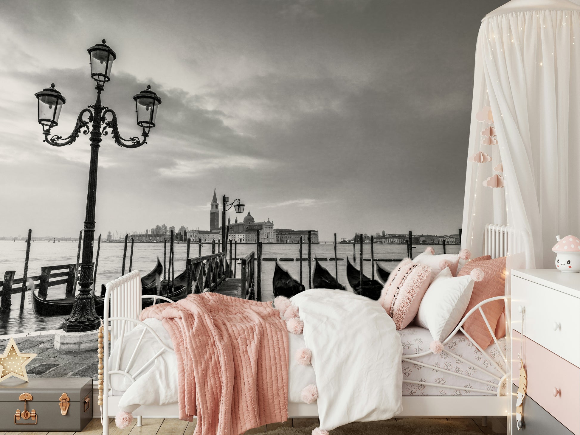 Invite the allure of Venice into your home with this striking photograph. Our wallpaper for walls showcases the city’s iconic architecture. The classic black and white palette offers a sophisticated style. It complements various interior styles, from minimalist to traditional. Imagine this design elevating your living room, home office, or entryway, creating an ambience that is both elegant and inspiring. The refined details give an intimate feel, while the light evokes the serenity of a Venetian dawn. Experience the magic of this timeless city by transforming your walls into a scenic work of art.